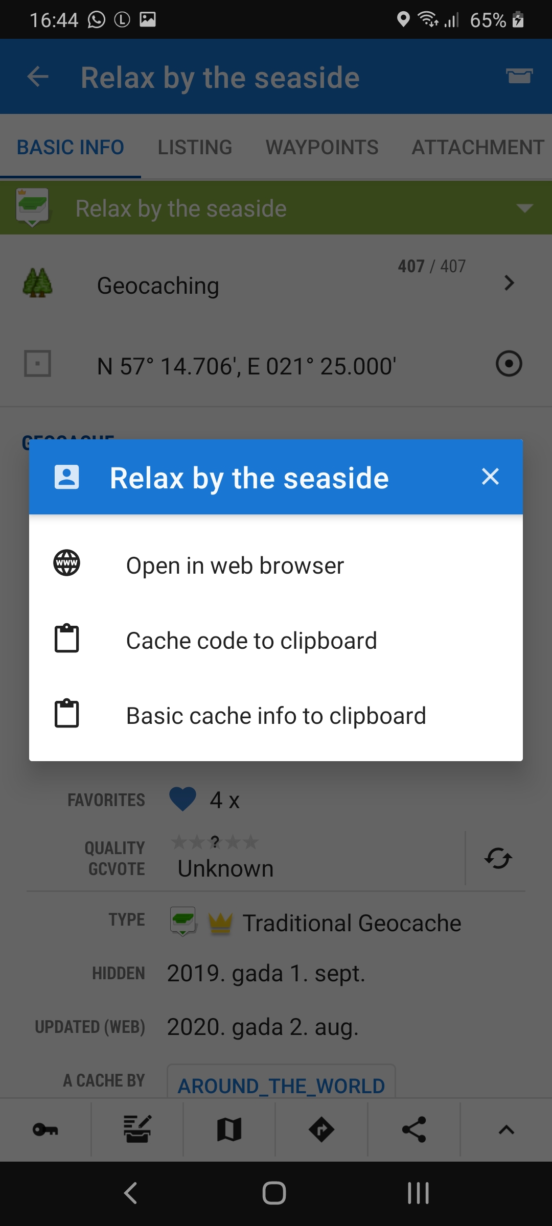 Right now it is possible to open geocache in browser, copy gc code, or copy basic cache info (might reveal updated coordinates).