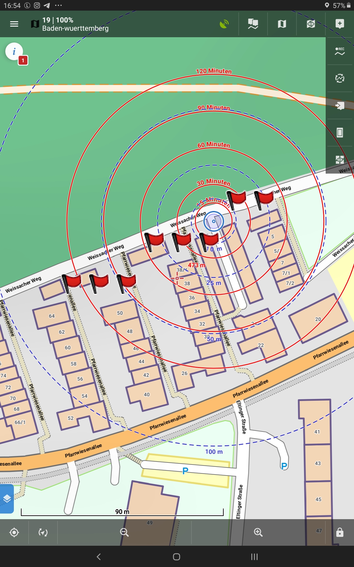 I recorded the NMEA file while walking around the block. Before that I cleared all map items. After the short round I had 8 waypoints displayed, as you can see from the nearest waypoint list.