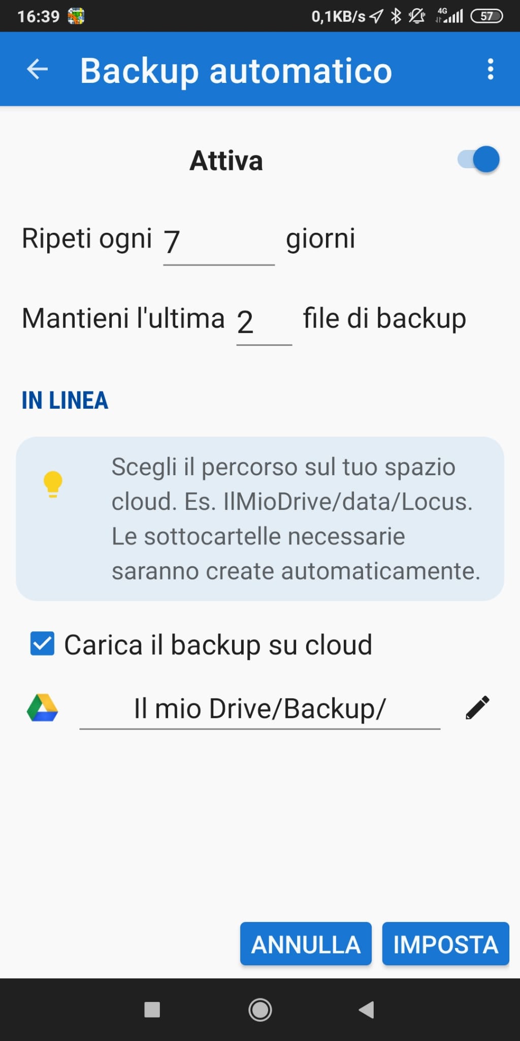 the automatic backup still doesn't start, despite yesterday I've configured it to run every day. Do I have to run LocusMap as a service? My phone is connected several hours a day to a wi-fi, either at home and at work.