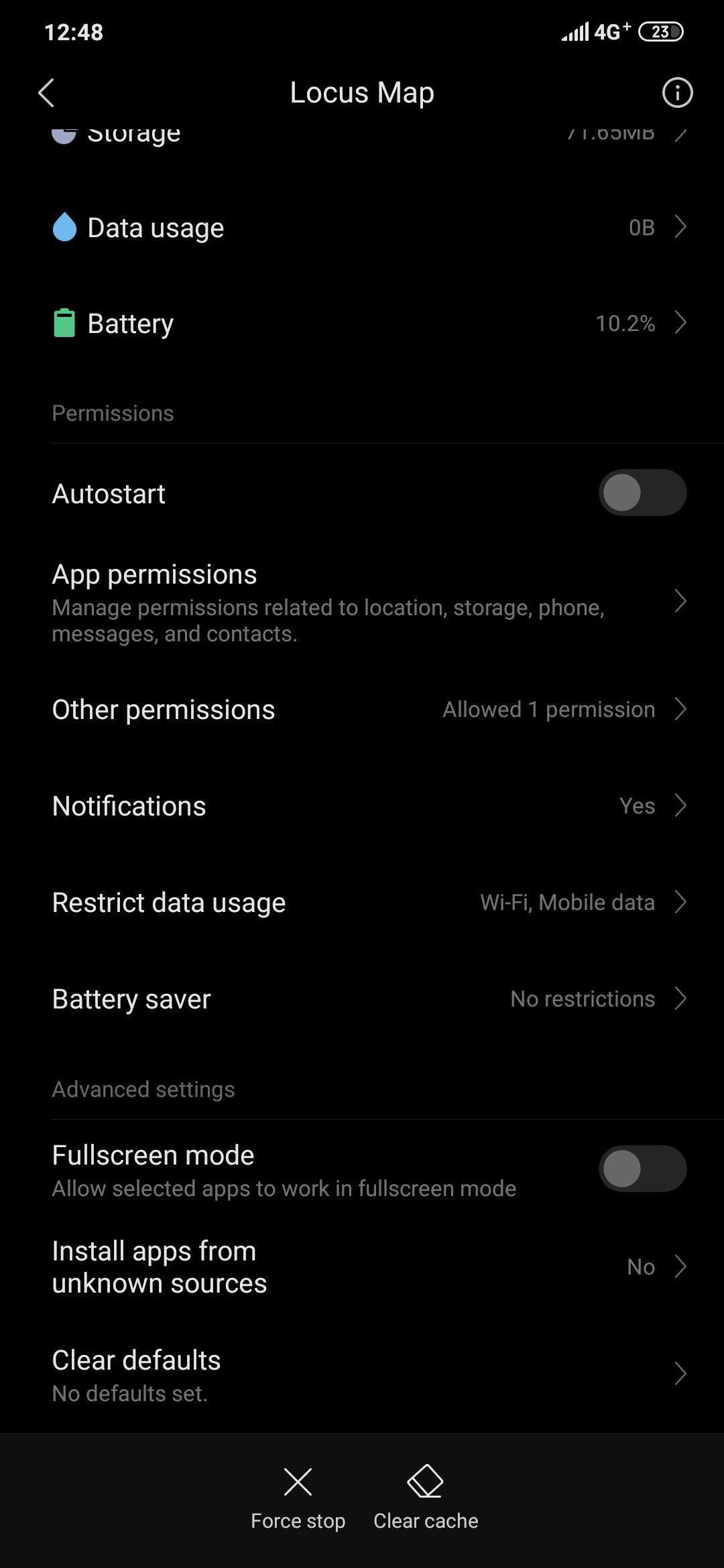 I have set the Locus to control turn on/off of display by tapping onscreen quick access command (see https://help.locusmap.eu/topic/complete-uninstall-before-a-locus-pro-fresh-install-issue). Even if that is the reason why I can't uninstall Locus, my phone says that Locus doesn't have defaults (see attached screenshot) so I cannot clear defaults/System administrator.