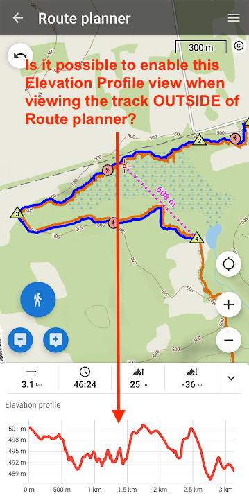 It would be very convenient to have that same Elevation Profile screen when reviewing a route on the map. By the same swipe up or by hitting a button.