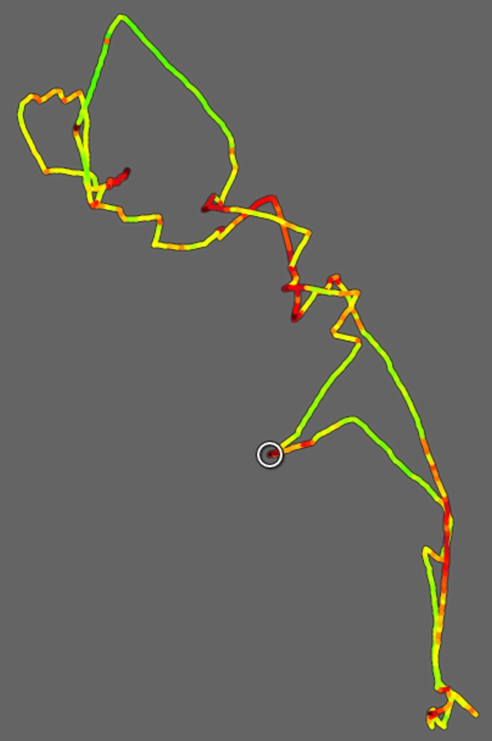 Das Geschwindigkeitsdiagramm ist zwar schön und man kann hinenzoomen. Schöner wäre es wenn der Track optional je Geschwindigkeit farblig dargestellt werden könnte. Siehe Anhang