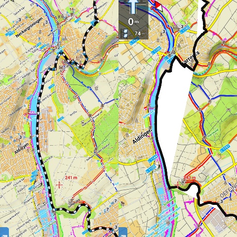 Die Karte wird richtig angezeigt, starte ich die Navigation, sind links und rechts der Route leere Stellen.