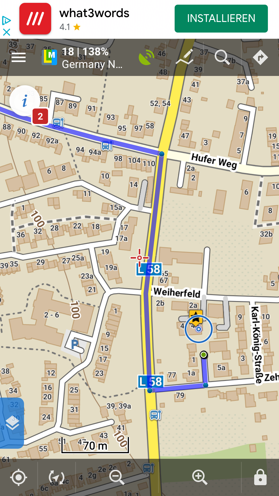 Little background - I used Locus years ago and now returned. Lots of things changed and were improved. Therefor I installed the app, went through the manual step by step and did some trials here and there. By any means this route was "saved" on the phone, but I have no idea how? The area is my home area and I know every corner, but would never create a route like this. Anyway, it's solved.