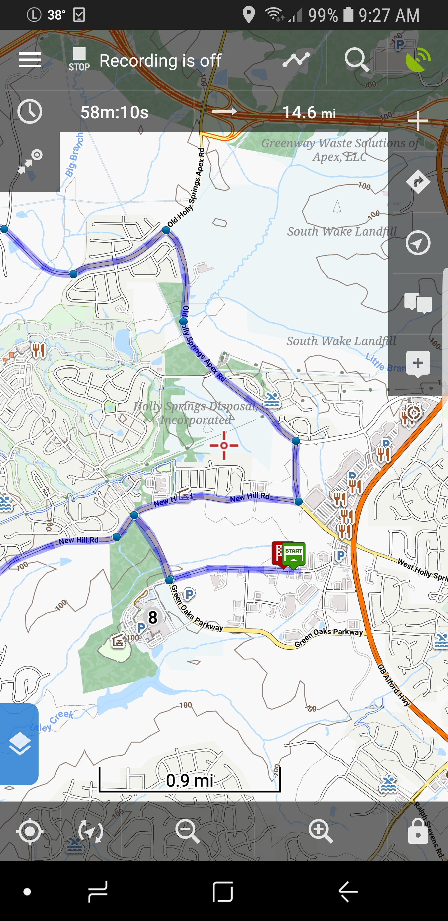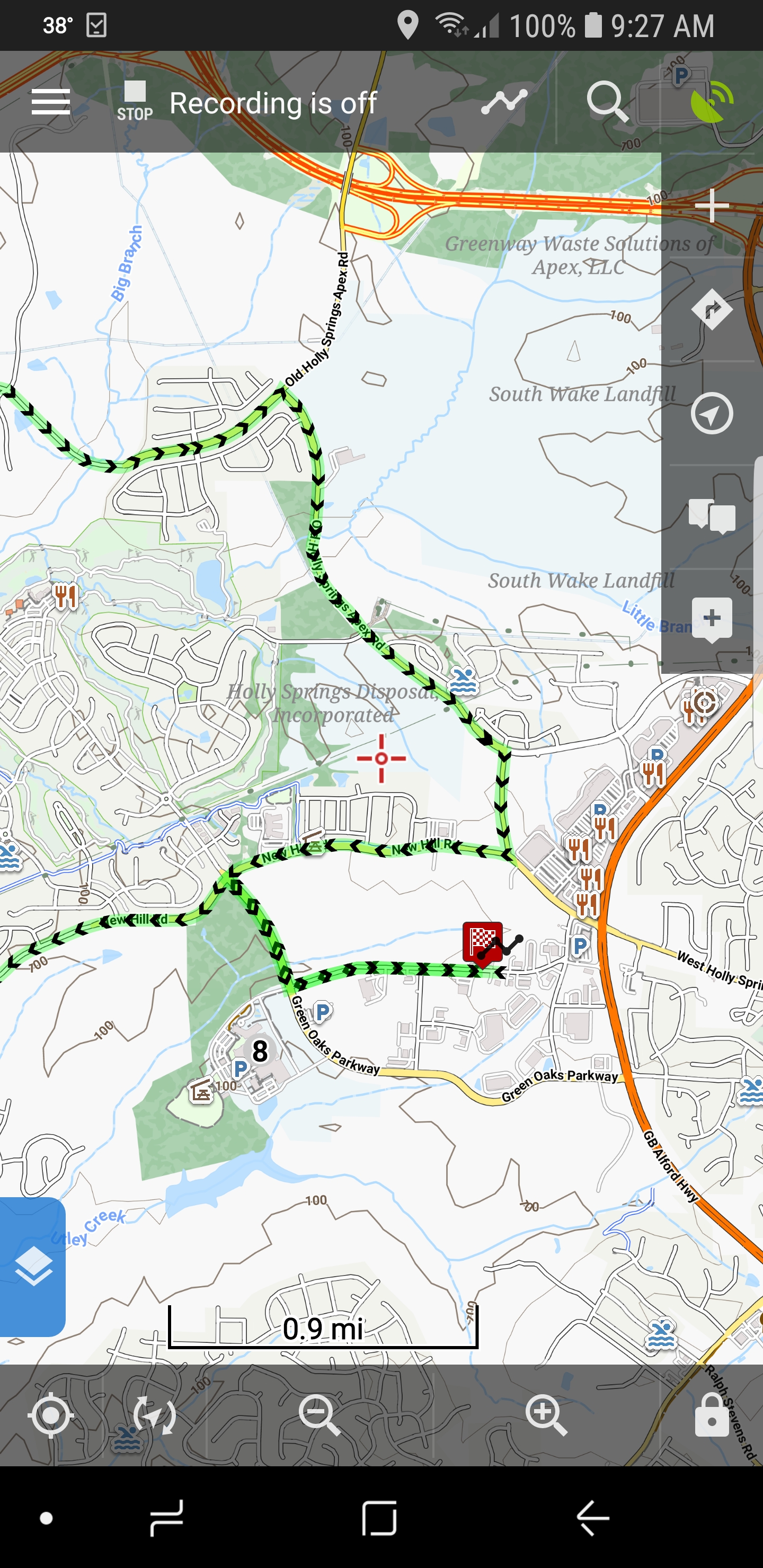 Here is the track file used and it was generated with RWGPS. I don't know if this would be considered a "recorded track". I am also using OpenAndro maps if that is a factor.