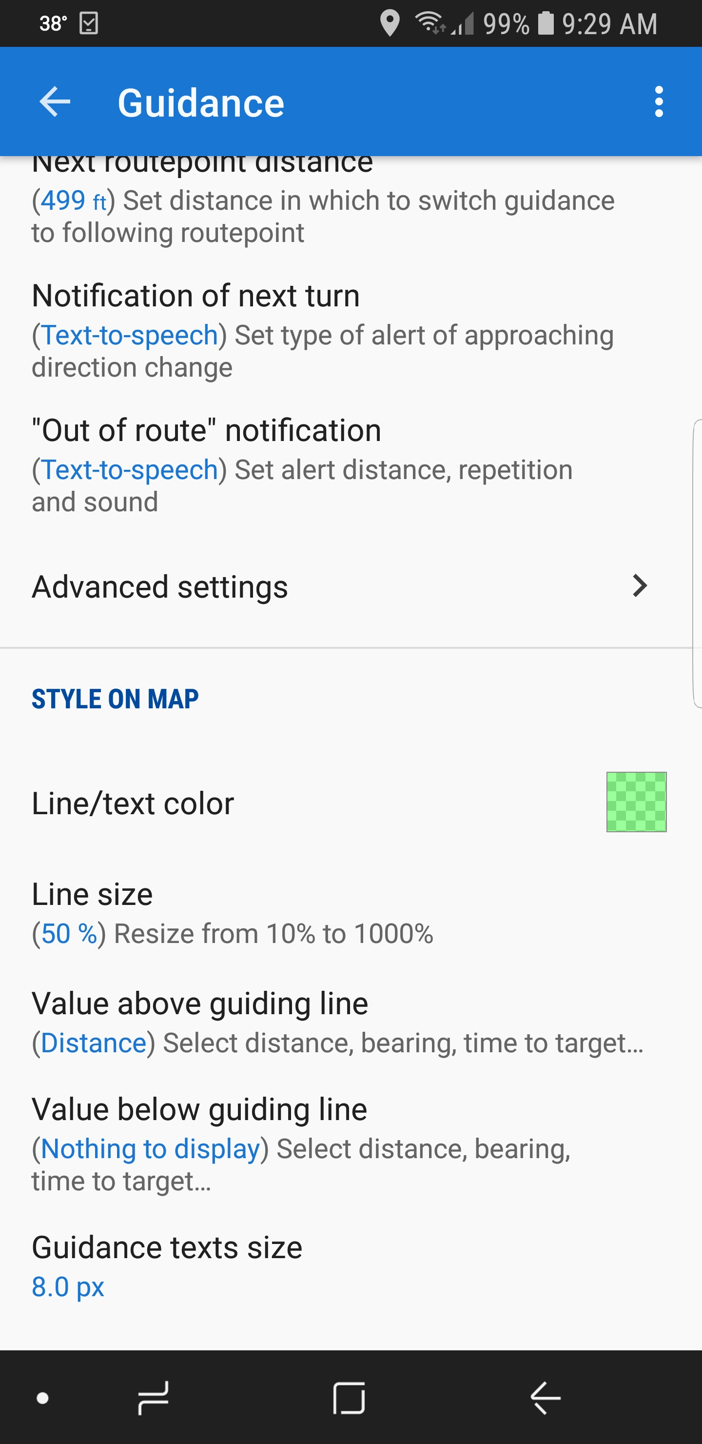 Locus settings > Guidance > Style on map