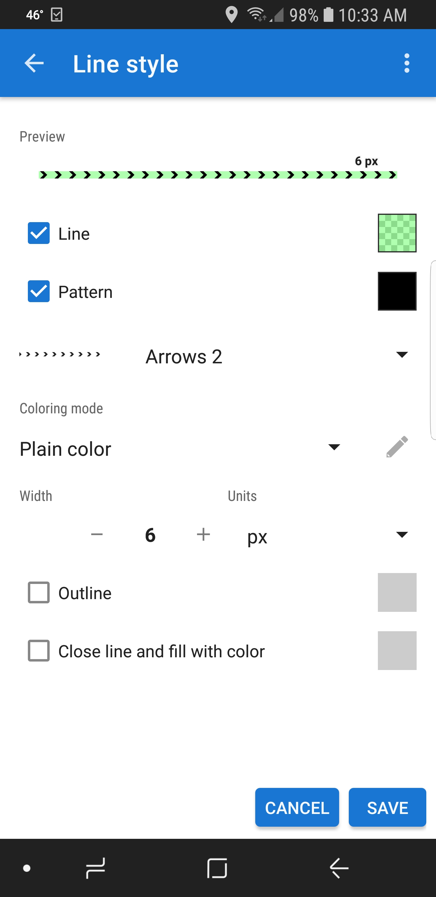 When you tap the line sample, the line style settings open. You obviously use it because the arrowed bright green line is not a default style.