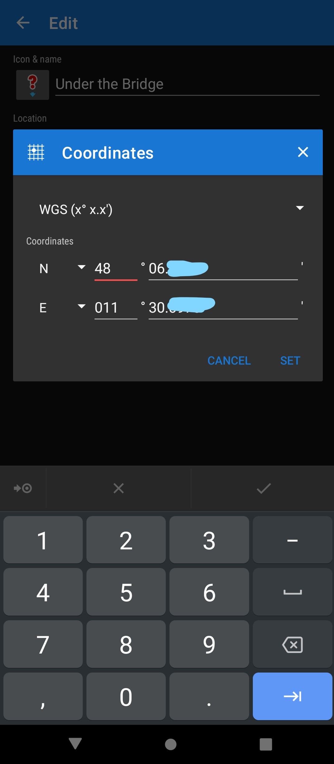 3) tap the coords and edit them