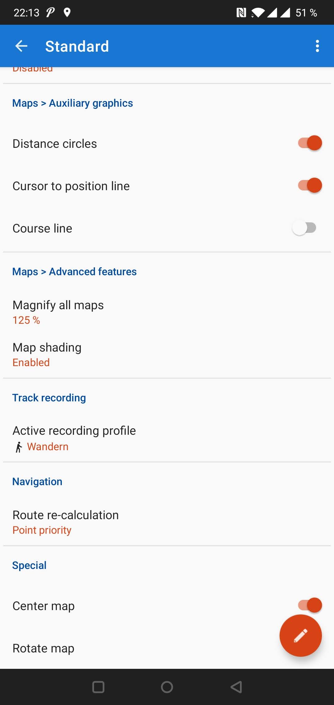 Screen attached, the toggle for the option "Rotate map" is hidden.