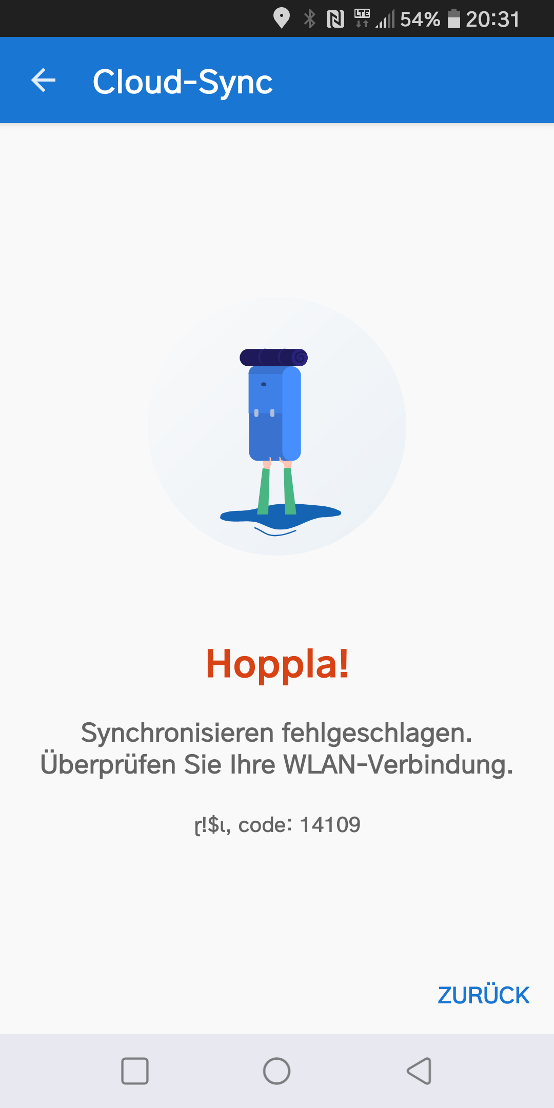 Synchronisation fehlgeschlagen, überprüfen sie ihre WLAN Verbindung.