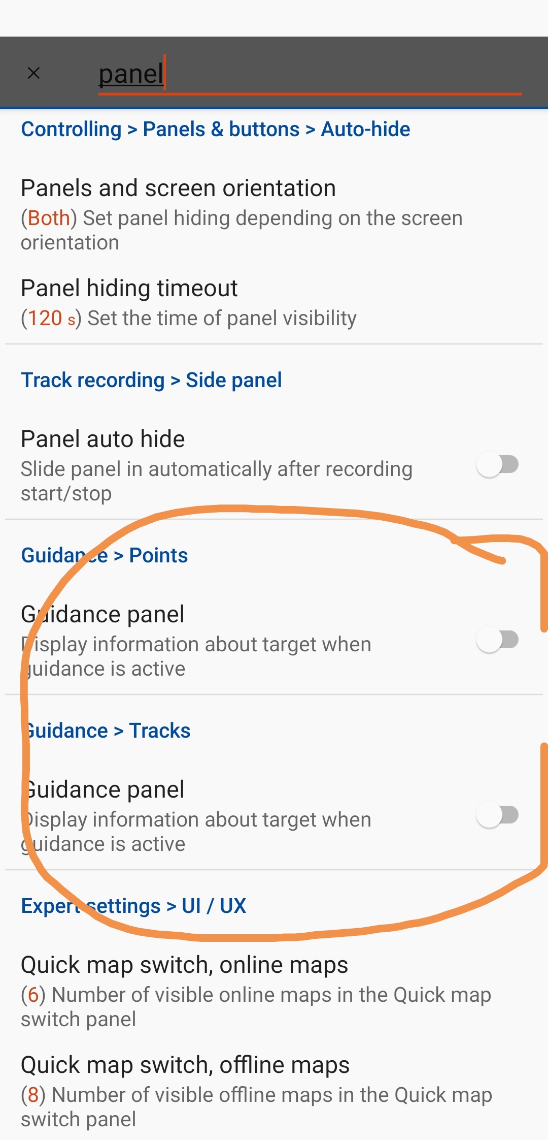 Turn off guidance panel when guiding along route