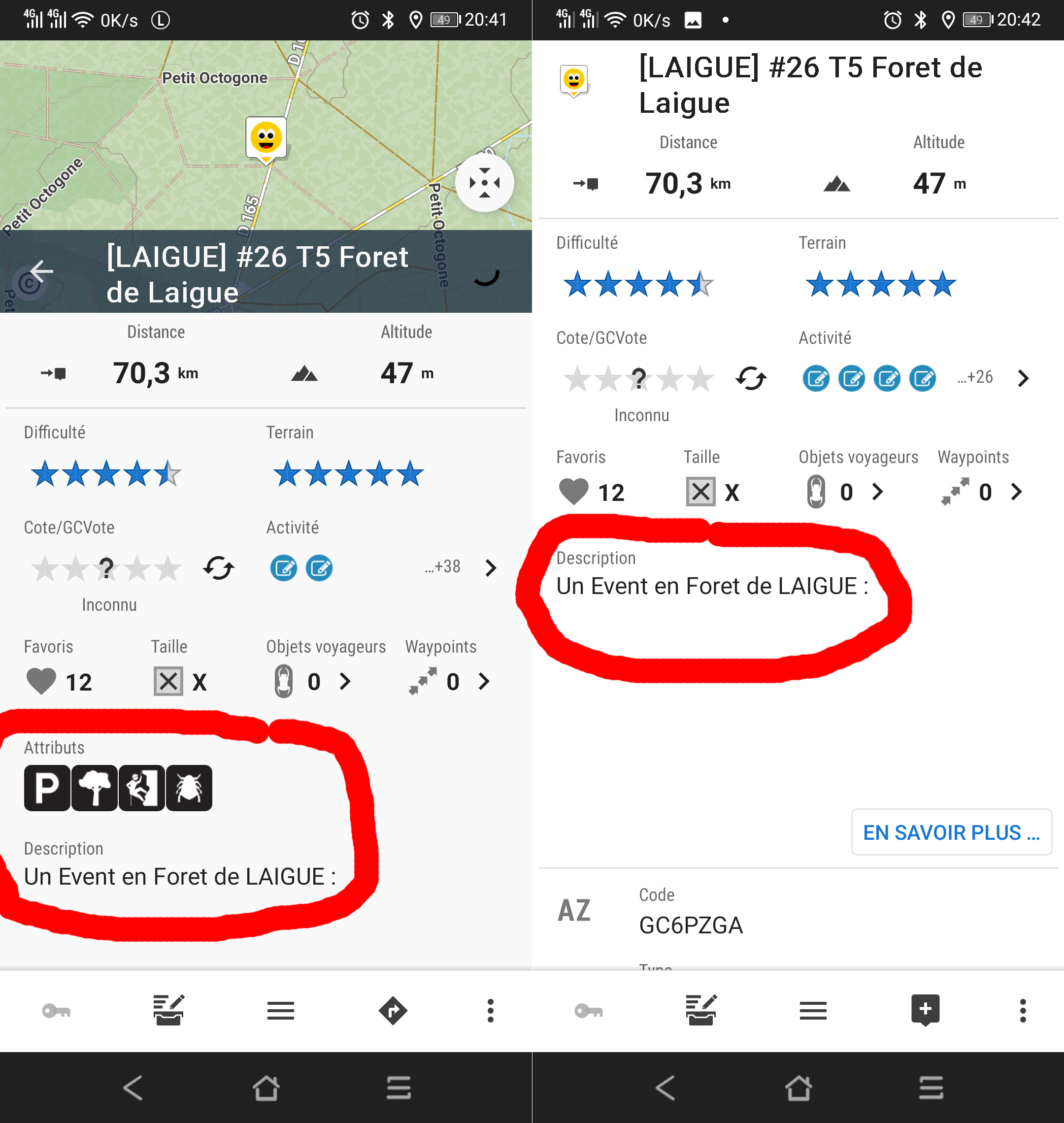 Pour information, les attributs dans les caches en direct ne s'affiche pas ! Par contre, ils sont bien présents lorsque la cache est enregistrée en local...