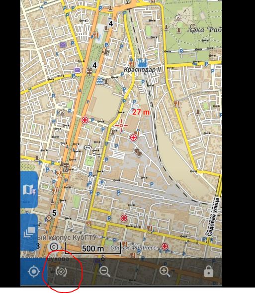 Rotate button - offers two modes of map orientation according to it. It's either rotating the map as a whole or showing your view of the north-facing map.
