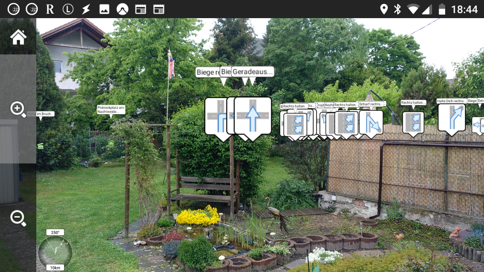 Außerdem wäre es nützlich, wenn sich diese Einstellung auch beim "Teilen/ GoogleEarth" und bei "Augmented Reality" sich auswirken könnte. Bei beiden Anwendungen stören die Navigationshinweise die Betrachtung, siehe Screenshots.
