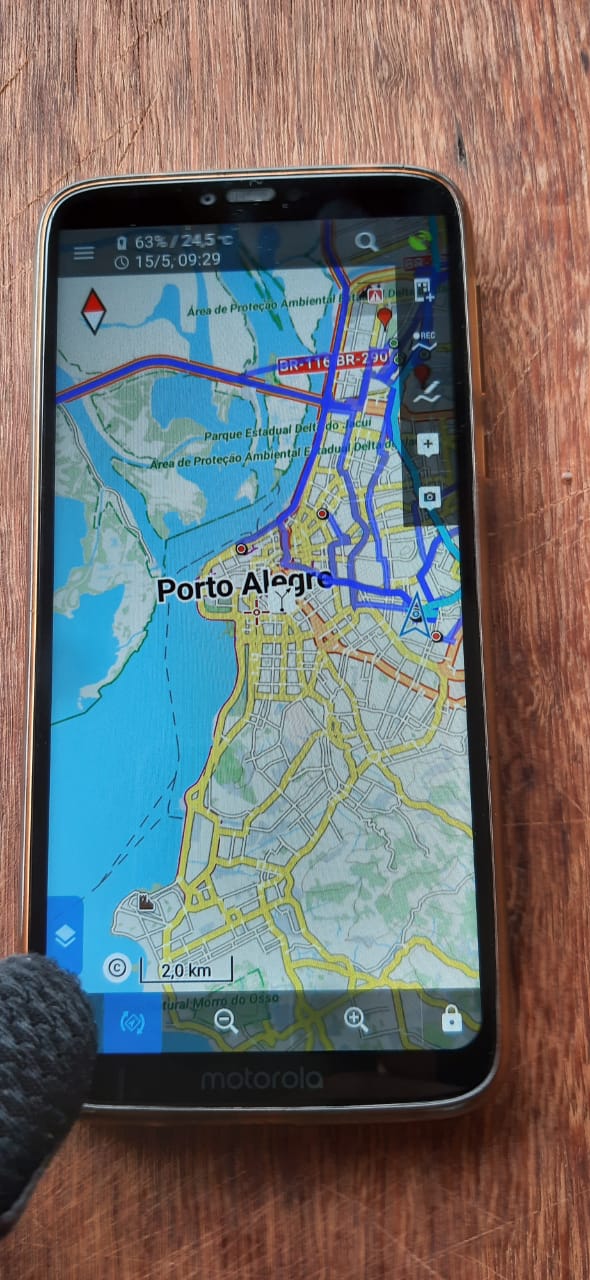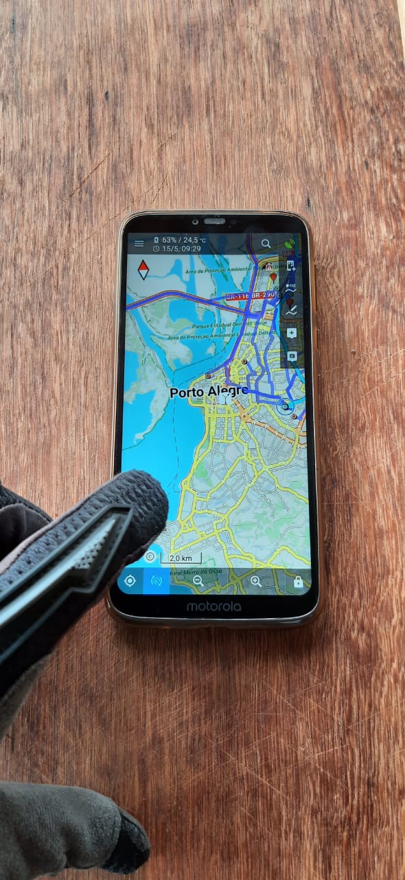 I use Locus Map to ride an offroad motorcycle. It's the best app !! When riding the motorcycle, I always wear gloves.