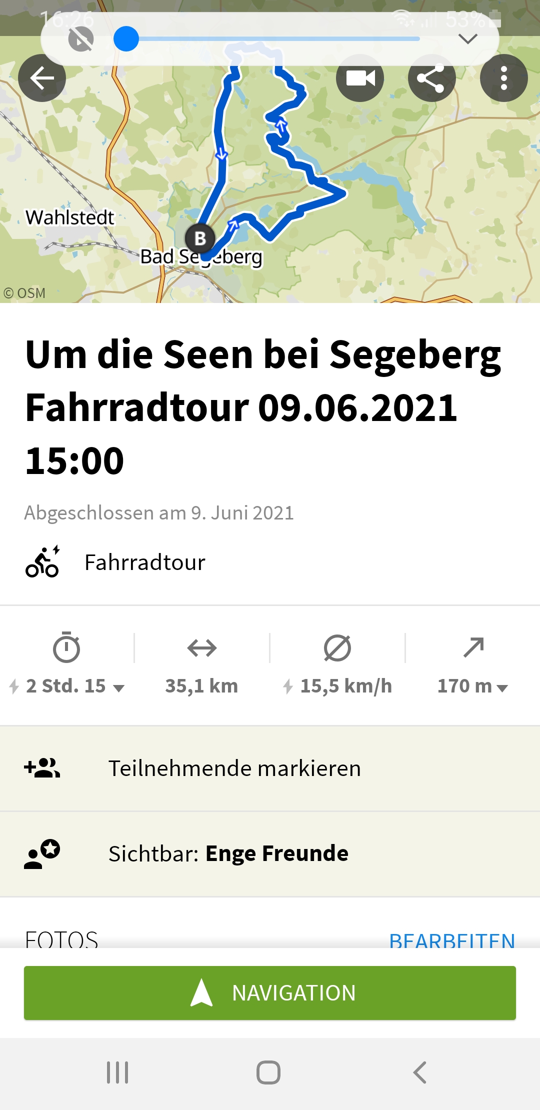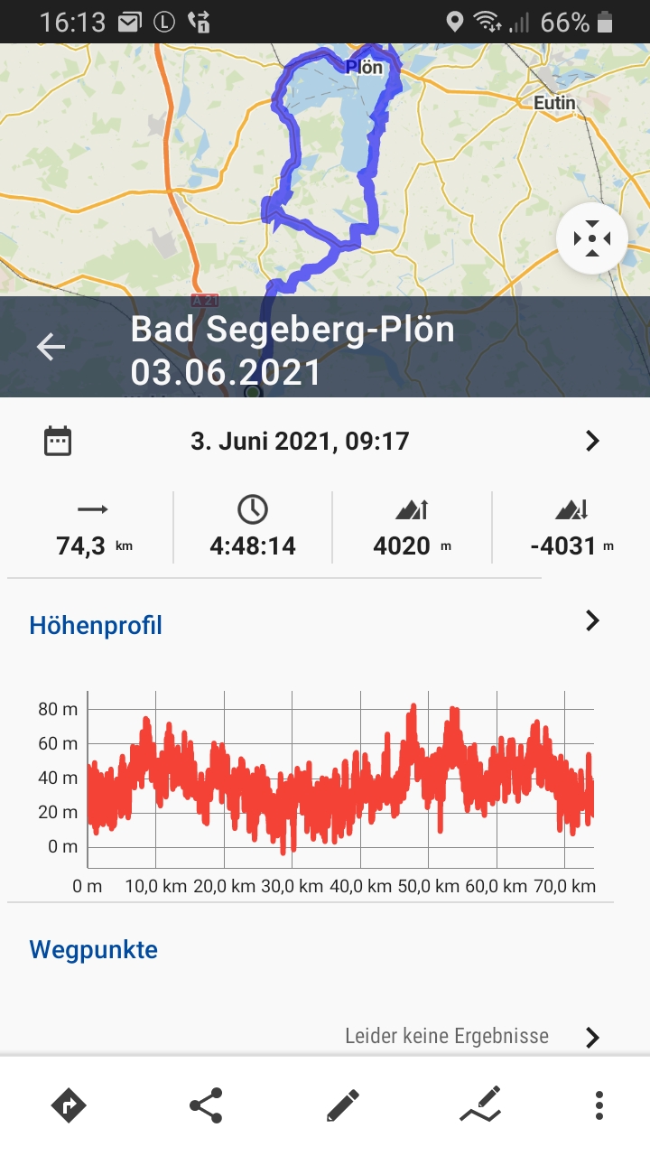 Mein Frau nutzt Komoot zur Aufzeichnug, die am heutigen Tage um die Seen 09.06.21 erstellte Aufzeichnung ist realistischer.