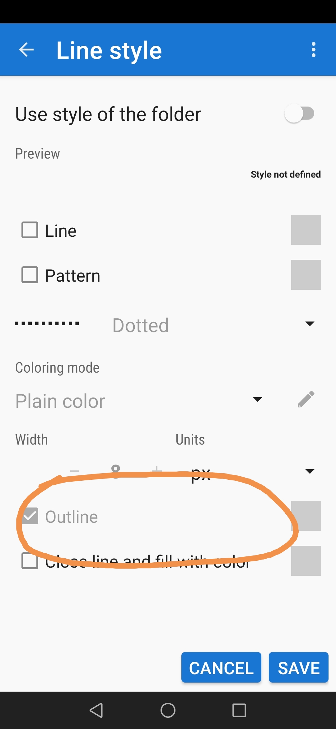 complicated task. Not a problem, I just had no idea how to do it last maybe 10 years. Anyway, after some playing, it seems that a solution exists. So in the next app (Beta) version of Locus Map 4, the outline will be correctly drawn next to the base line. In cases, where you will need to draw only an outline, please try using the fully transparent base line. Hope it will work as expected.