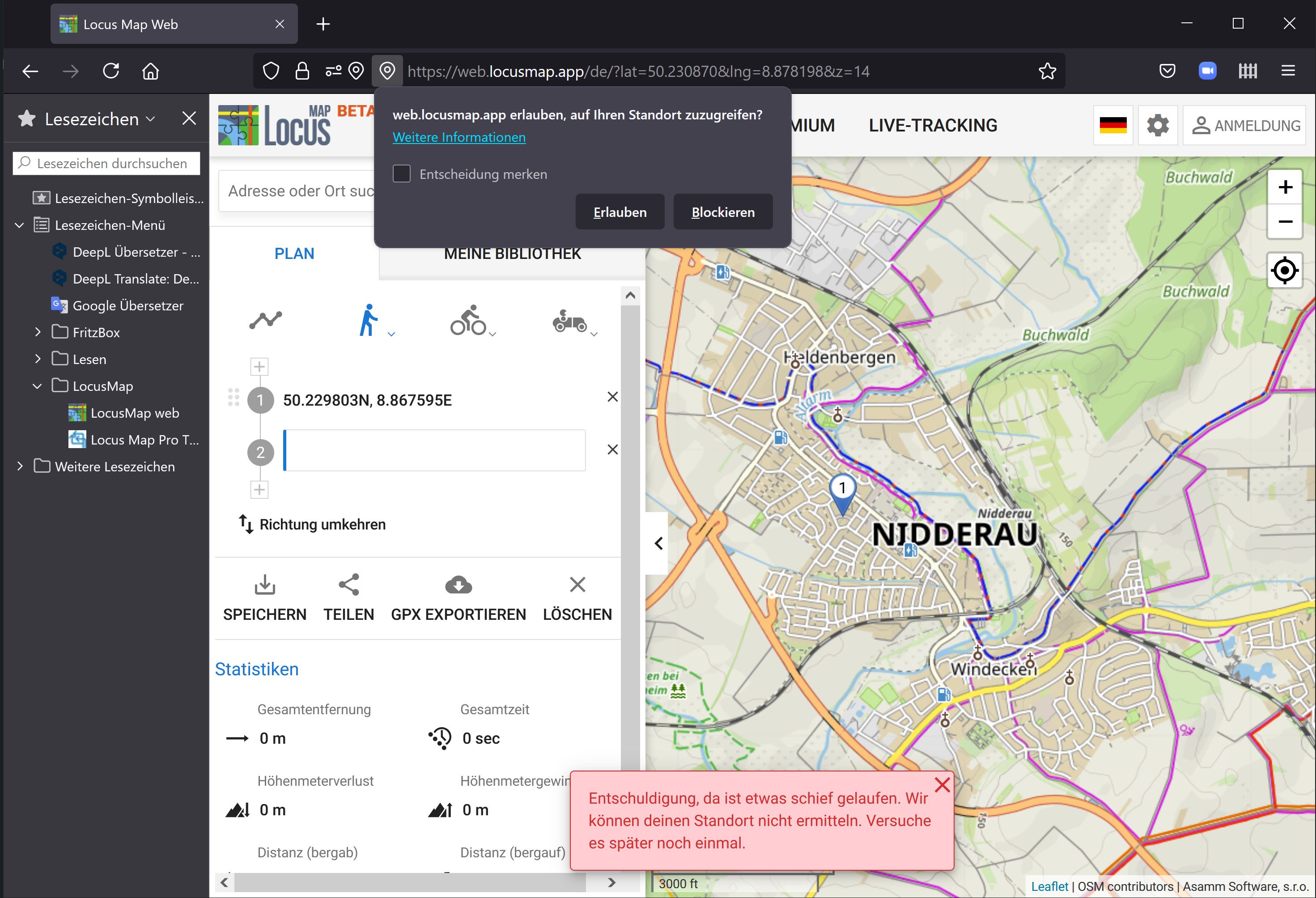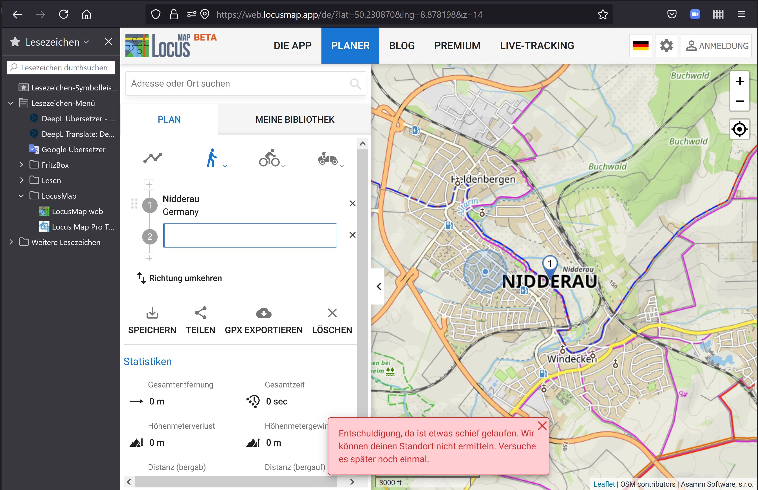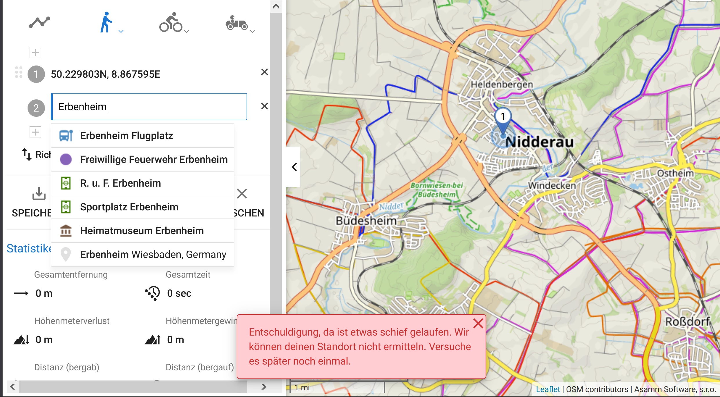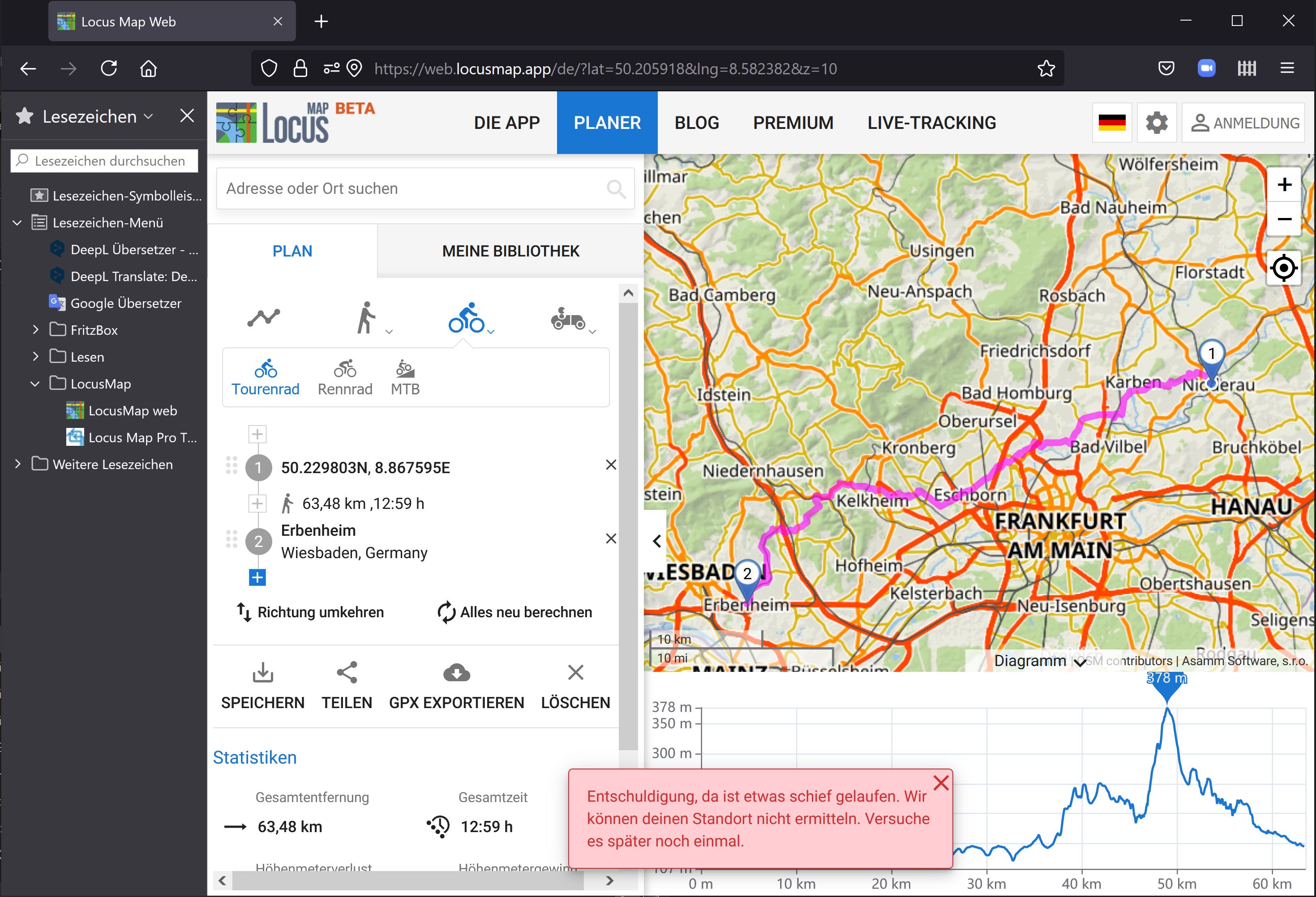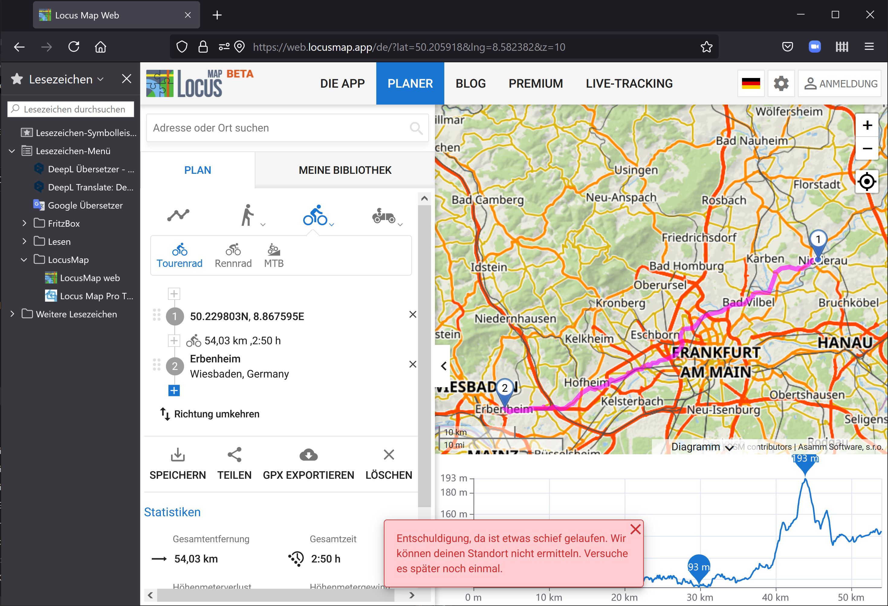 Ich erhalte die Fehlermeldung am Routenplaner am PC und zwar unabhängig davon, ob es sich um eine Planung oder eine gespeicherte Tour handelt.