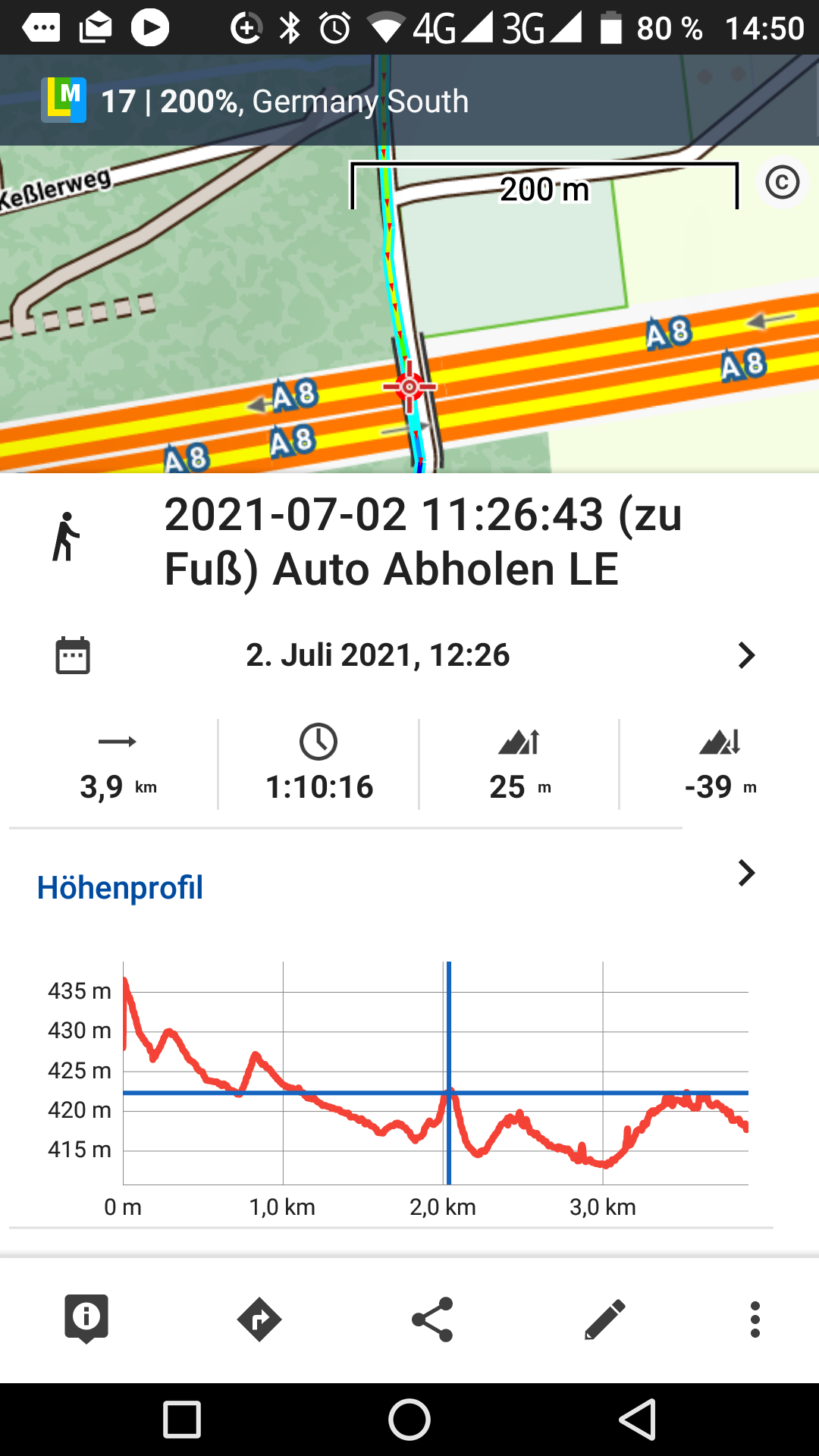 4. Select the altitude graph to be shown. The graph is displayed fullscreen and the selected position is still shown.