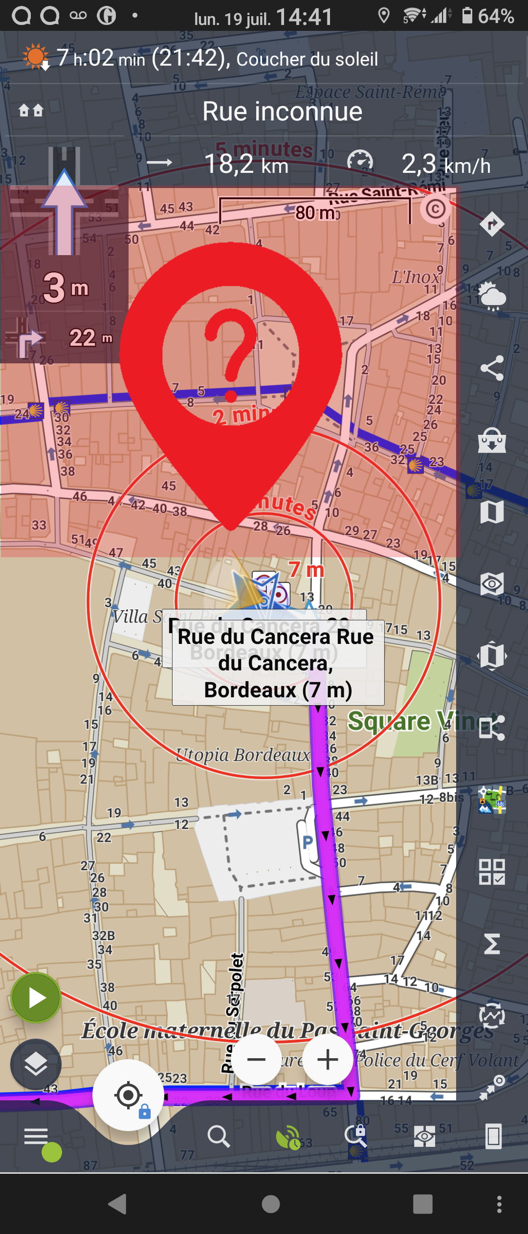 I noticed a problem when losing GPS signal, when there's too much traffic noise around, and when you're not connected to 3G/4G/5G to recalculate the intinerary : you don't see when you lost GPS signal! (or a very small icon on top of the Android status bar).