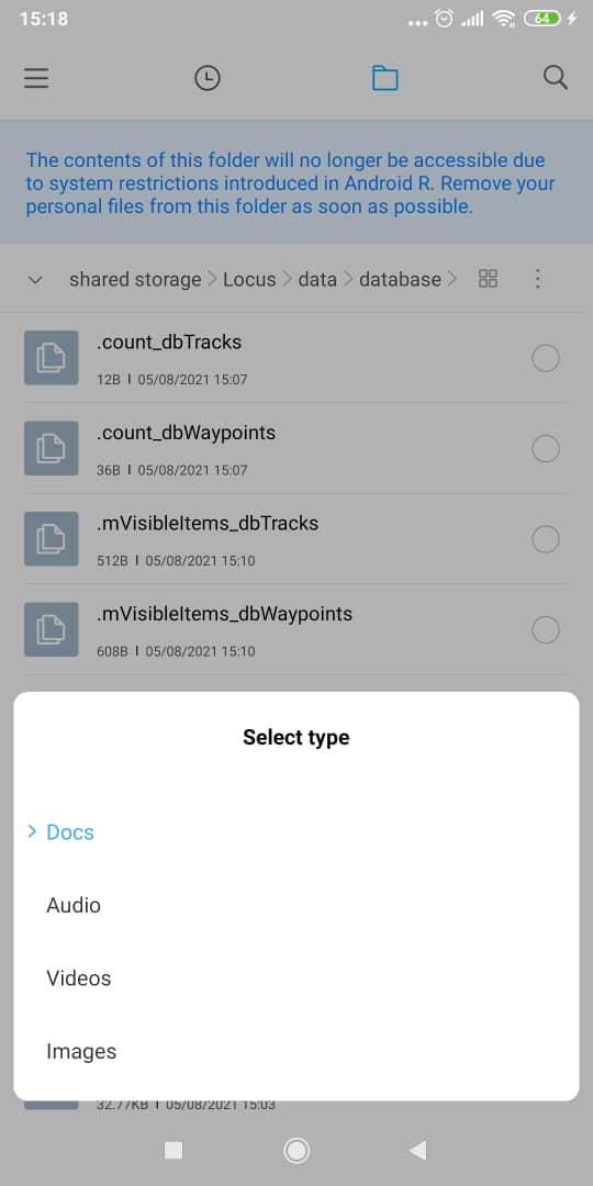 Hello. I'm using Locus Map Pro on my Xiaomi Redmi Note 5 Pro. I recorded few tracks this week and saved it. Unfortunately, when i open the map, its looks like all of the recorded tracks are missing. I have a look at the database folder and its stated there that the folder will no longer be accessible due to Android R system. Any solution for this problem?