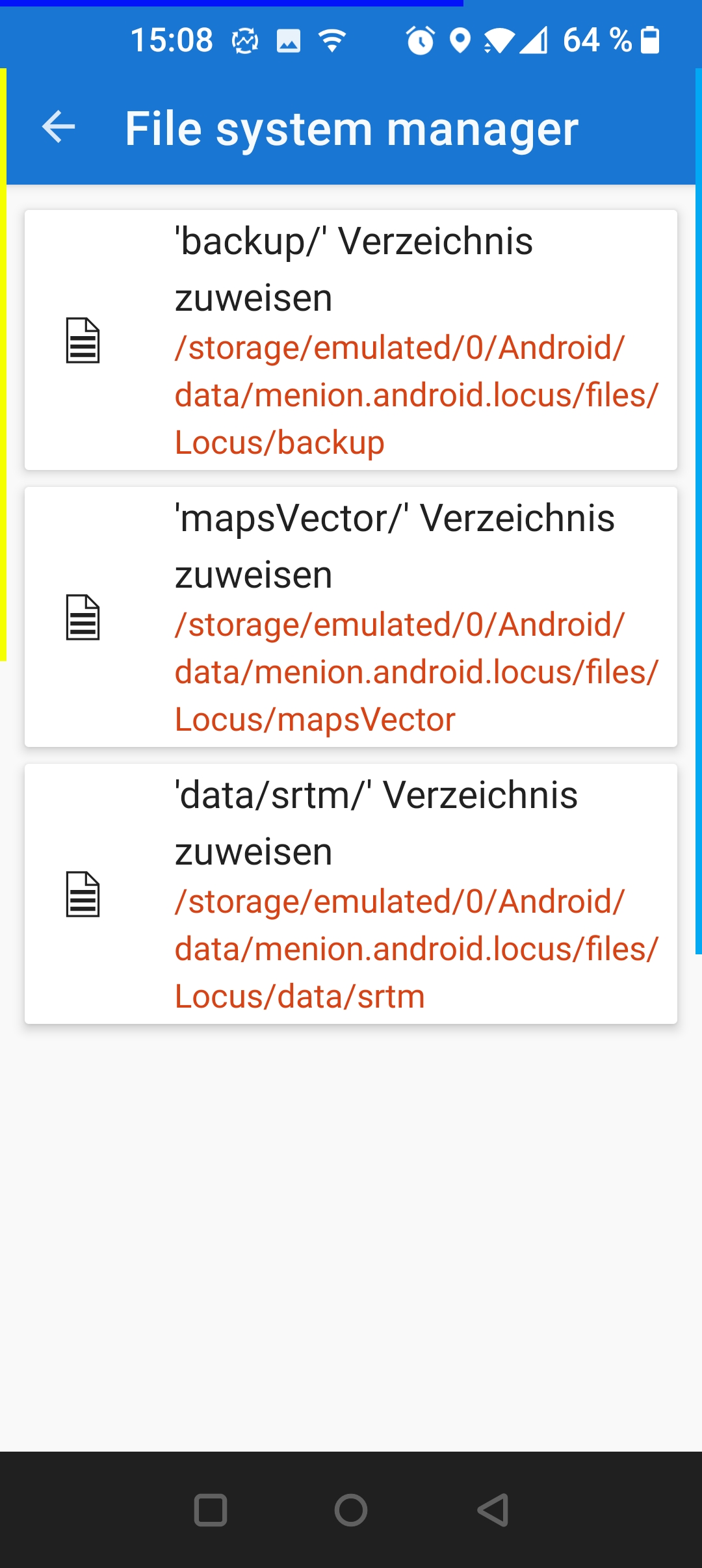 nicht angezeigt werden. Mir ist eingefallen das mit der neuen Version auch das Verzeichnis der Geotag-Foros sich geändert hat. Soweit so gut. Habe die "alten" Verweise in Geotag-Fotos gelöscht und wollte sie neu in ~/Android/data/menion.android.locus/... anlegen lassen. Aber: