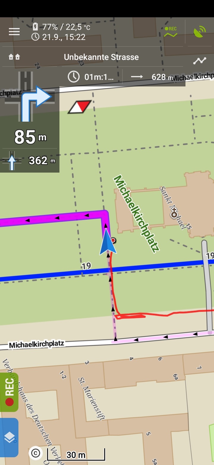 When i have to turn right, Locus advices „turn right“. Also all other navigation advices seem to be correct.