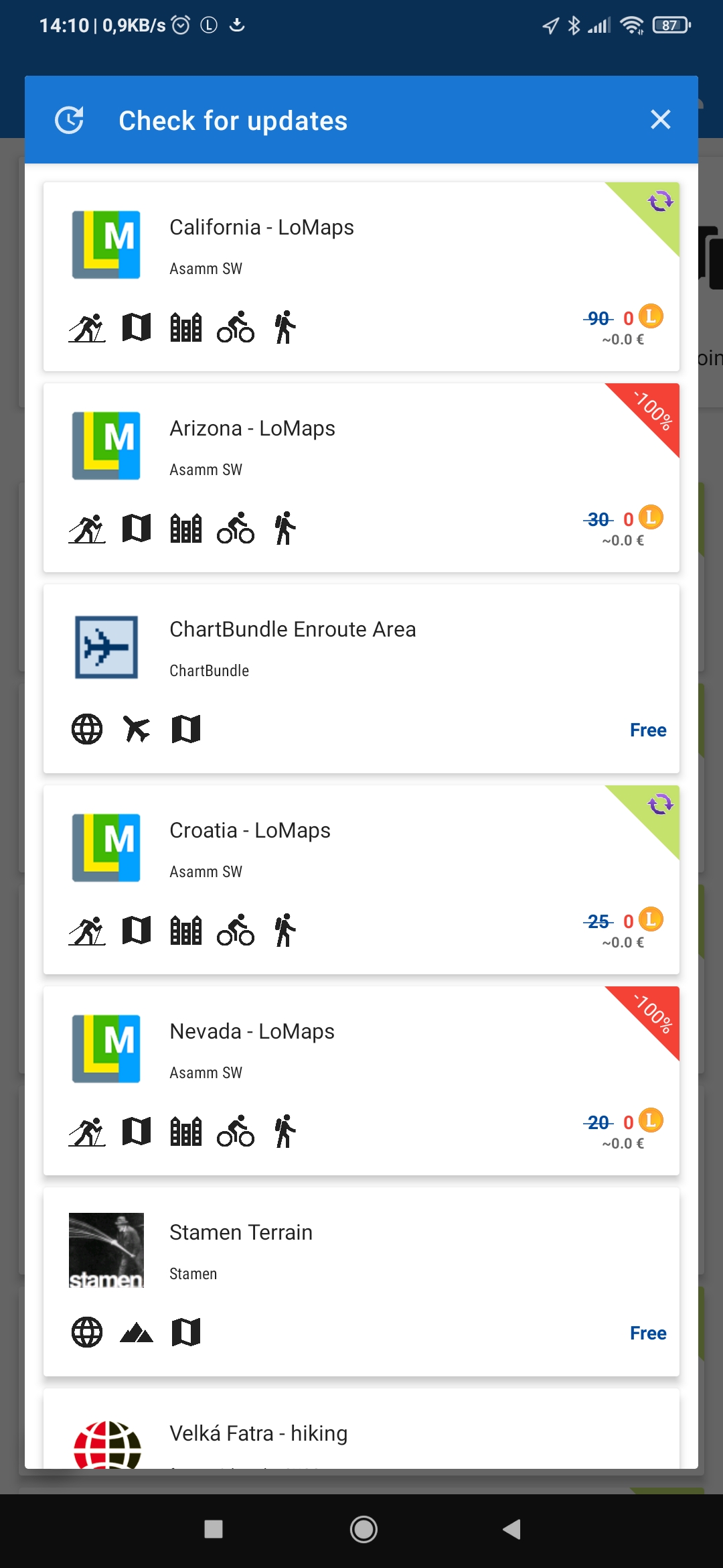 When I run "Check for updates" it shows me a loot of maps and I have no idea what the symbols in corners mean. Just guessing that: