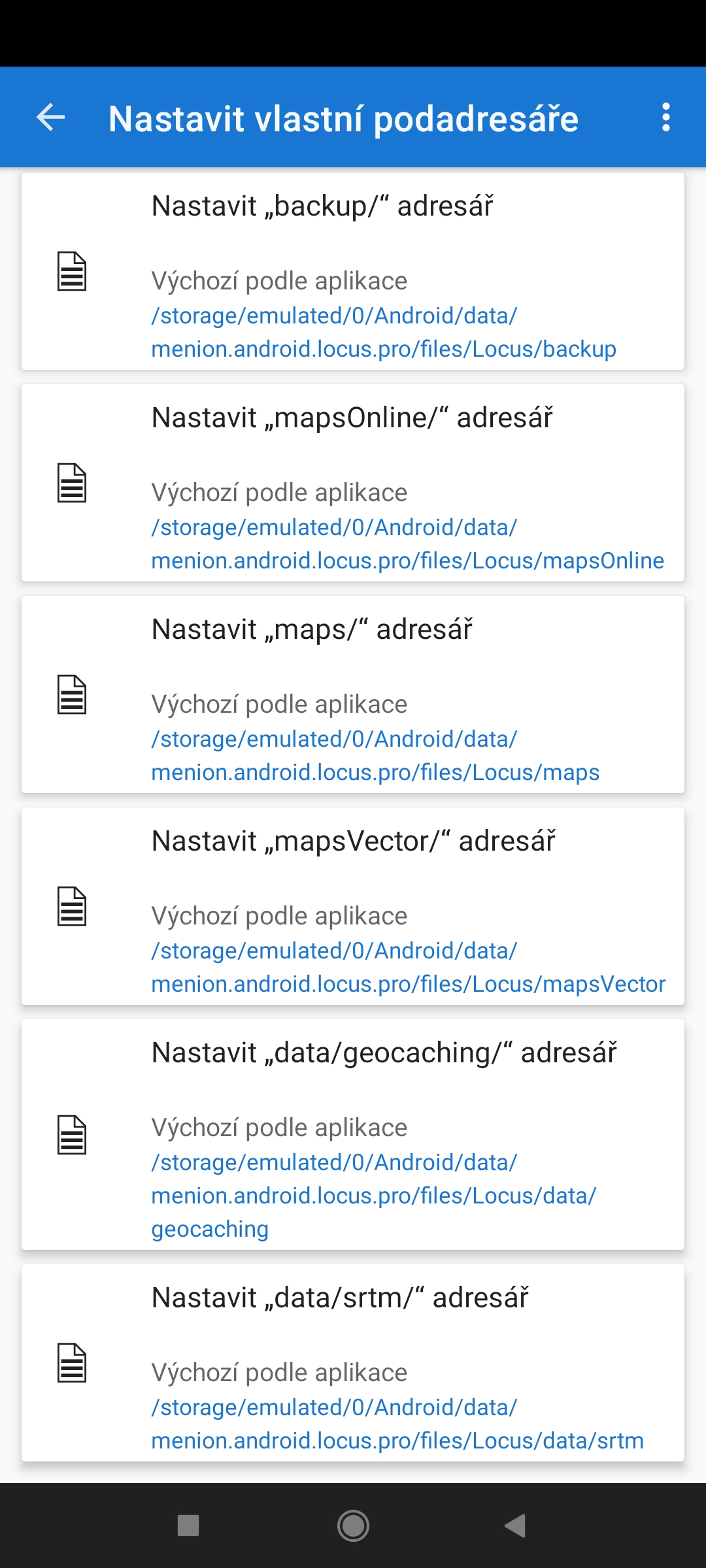 Ano, mapy již vidím. Ale ještě bych potřeboval radu ohledně exportu z c:geo do Locusu, jaký mám nastavit v aplikaci c:geo výchozí adresář, abych mohl importovat do Locus?