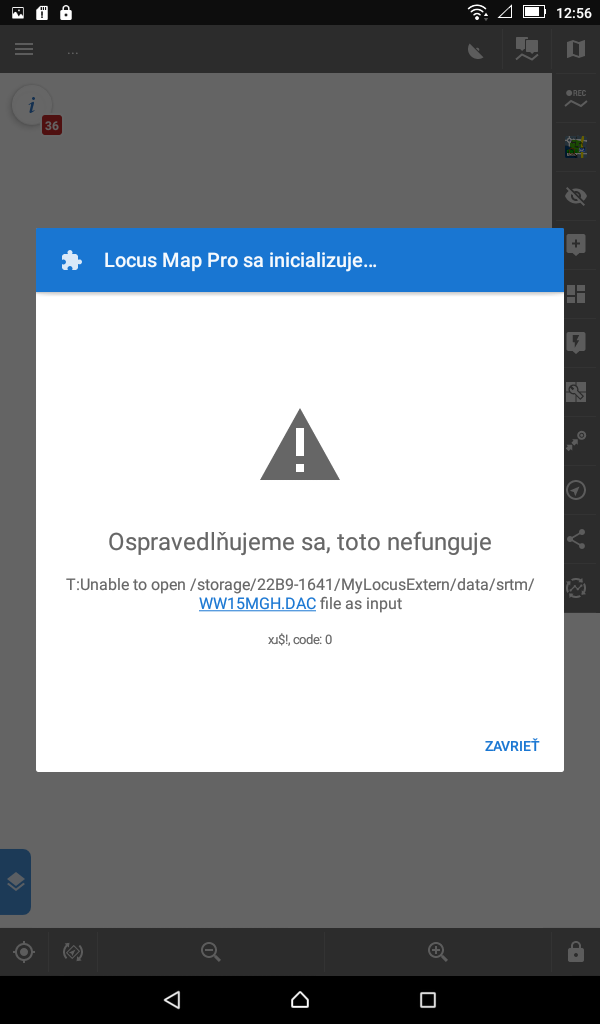Nelze spustit Locus Map Pro 3.56.5 kvůli SRTM souboru
