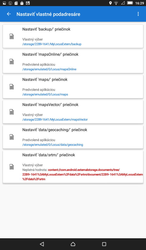 Po aktualizácii na v. 3.56.5 sa nedá Locus spustiť. Pri inicializacii vypíše chybu (viď. príloha) a Locus skončí. Čo znamená tá cesta /storage/22B9-1641/MyLocusExtern/data... ? Ja to mám ukladané v /storage/sdcard1/MyLocusExtern/data/...