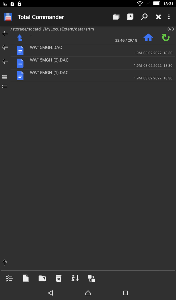 - spusťte správce souborů a vstupte do adresáře /storage/sdcard1/MyLocusExtern/data/srtm/