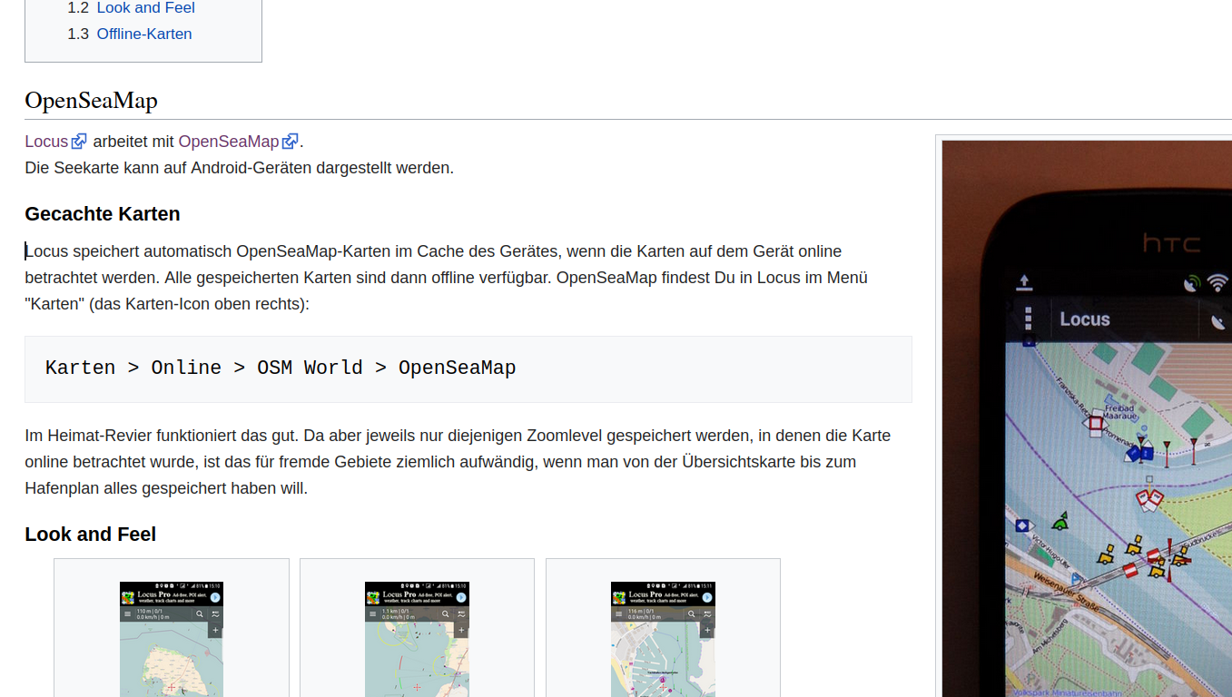 "...Alle gespeicherten Karten sind dann offline verfügbar. OpenSeaMap findest Du in Locus im Menü "Karten" (das Karten-Icon oben rechts):