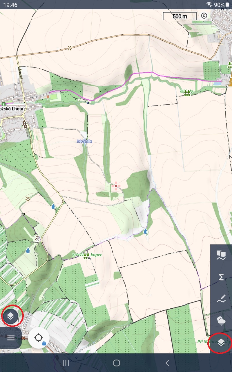 V Locusu 4.8.0 dostalo tlačítko Obsah obrazovky s mapou novou funkci dlouhým stiskem přepínání dvou map. To je v pořádku, ale stejnou ikonu používá i tlačítko v postranní liště Překryvy mapy. Zakroužkoval jsem to v SCR. Vzhledem k odlišnosti funkcí by bylo vhodné změnit některou z ikon