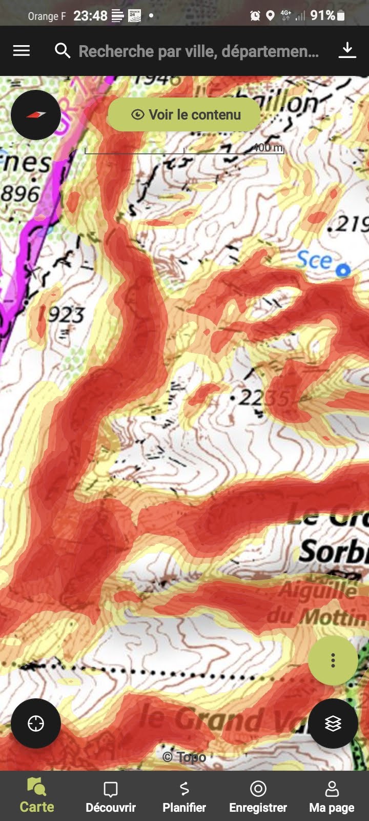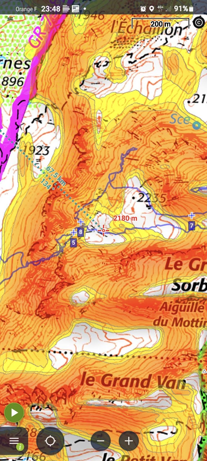 | Hi Sorry, I didnt find a very similar topic. For France, I regularly observe on the terrain that LOCUS MAPS slopes are much less accurate than IGN "slopes map"(https://www.geoportail.gouv.fr/donnees/carte-des-pentes) or even Outdooractive slopes. I joined two examples (places) of screenshot (IGN, Outdooractive, Locus). ---- Would it be possible to easily access to those IGN slopes map/layer ? ---- Is there another way (wms/wmts??) to use those IGN slopes map/layer ? I do not find explanations about it. I hike often off-trail (summer/winter), so despite the great qualities of Locus Maps and my GOLD subscription, I will use the Iphigénie app again if I cannot use the accurate slope layer (IGN "slopes map"). . Anyway, thanks for your great app. I hope you 've got a solution. Regards ![]() ![]() ![]() . ![]() ![]() ![]() |