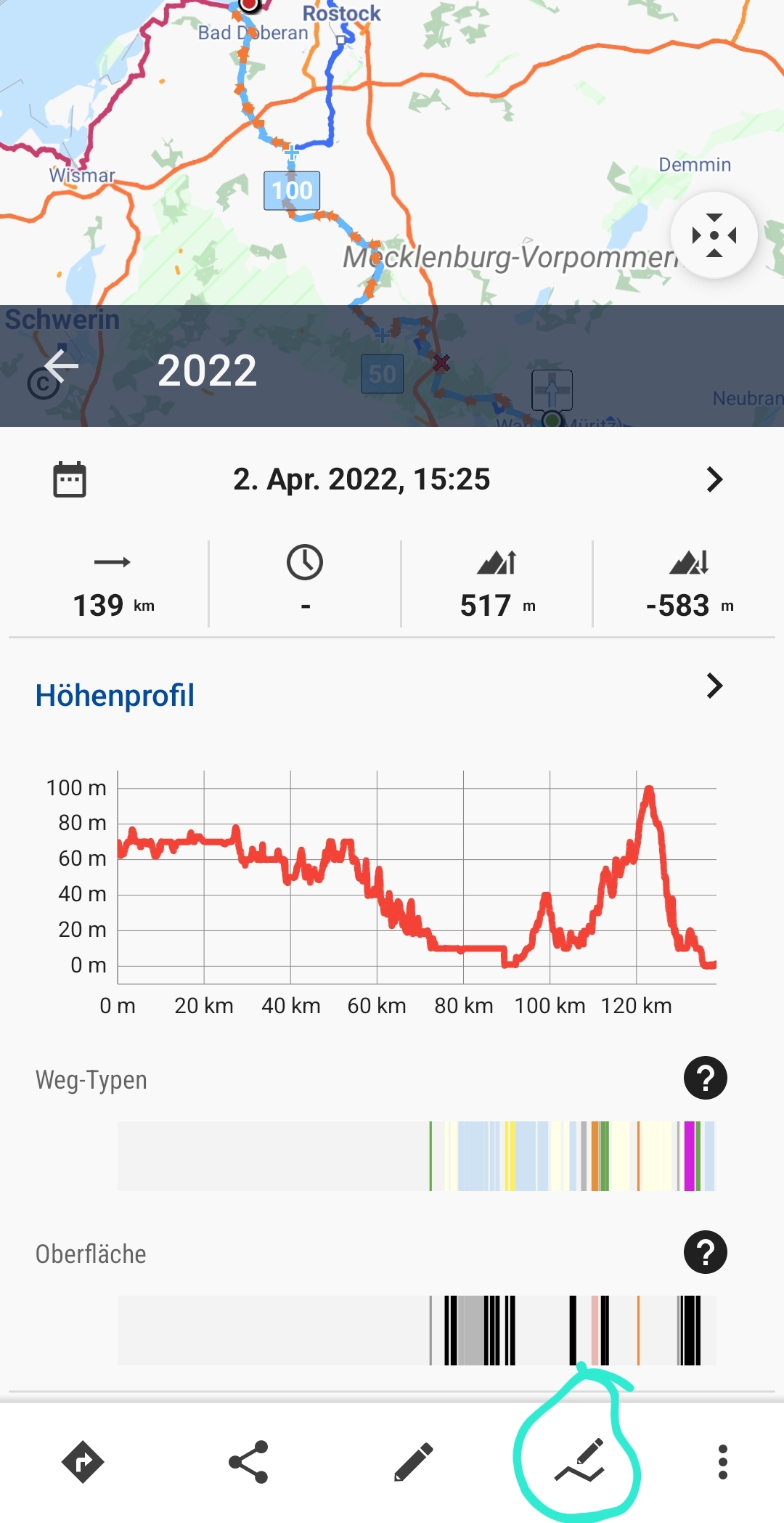 Marking a track -> option "open in route planner".