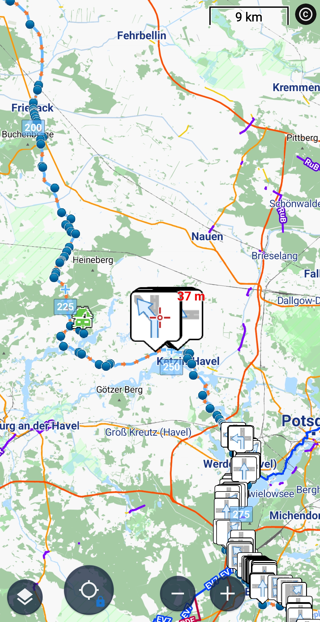 If by the Locus setting OFF, the blue dots are hidden, and not visible in a navigation capable track, then the turn Icons do not appear even when hoovering the map over well known turn locations. No ?
