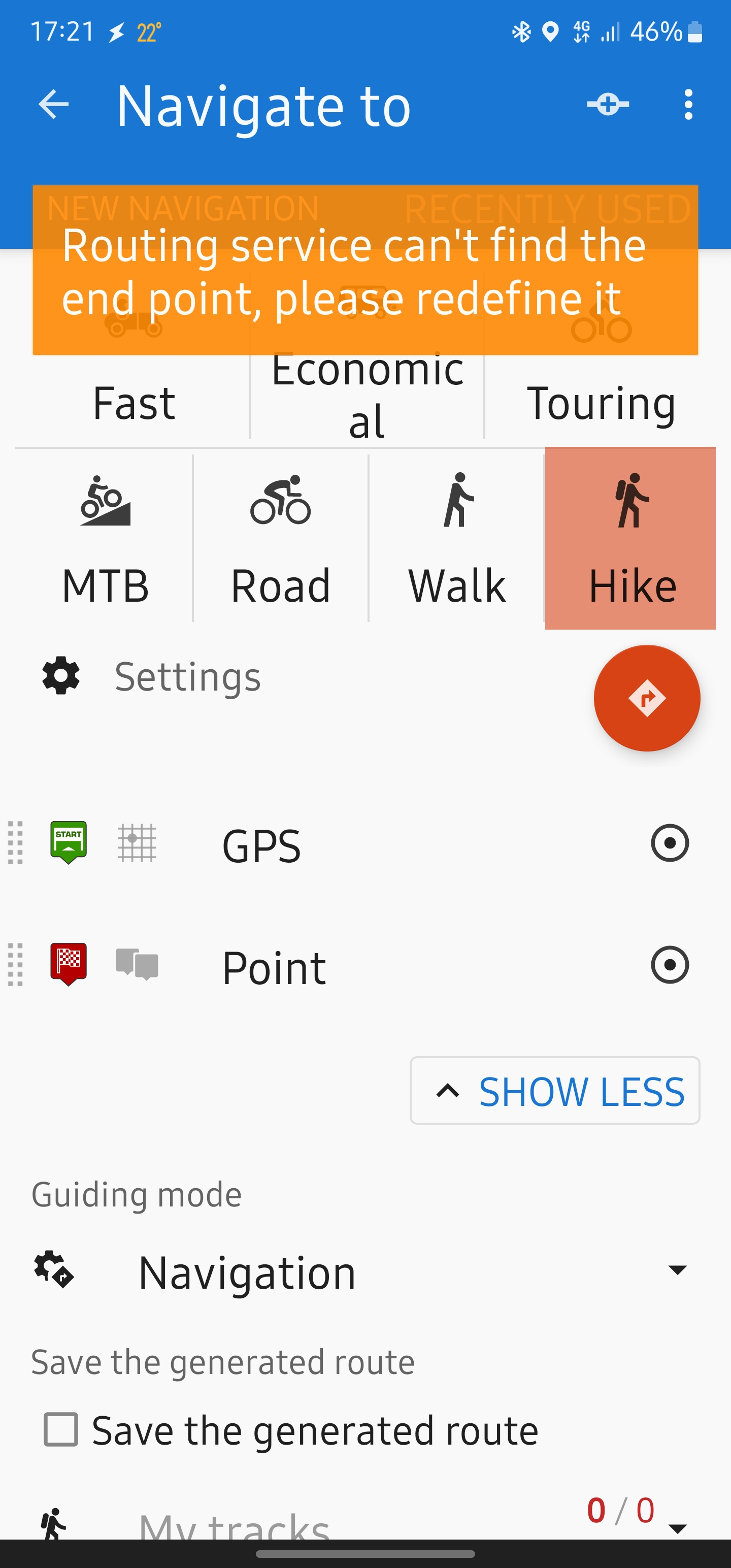 I was in a forest trip with Locus 4 Gold edition and tried to Navigate to a point on the map,but Locus gave 2 types of errors which i attach here.I tried also route planning on the phone with the same result error