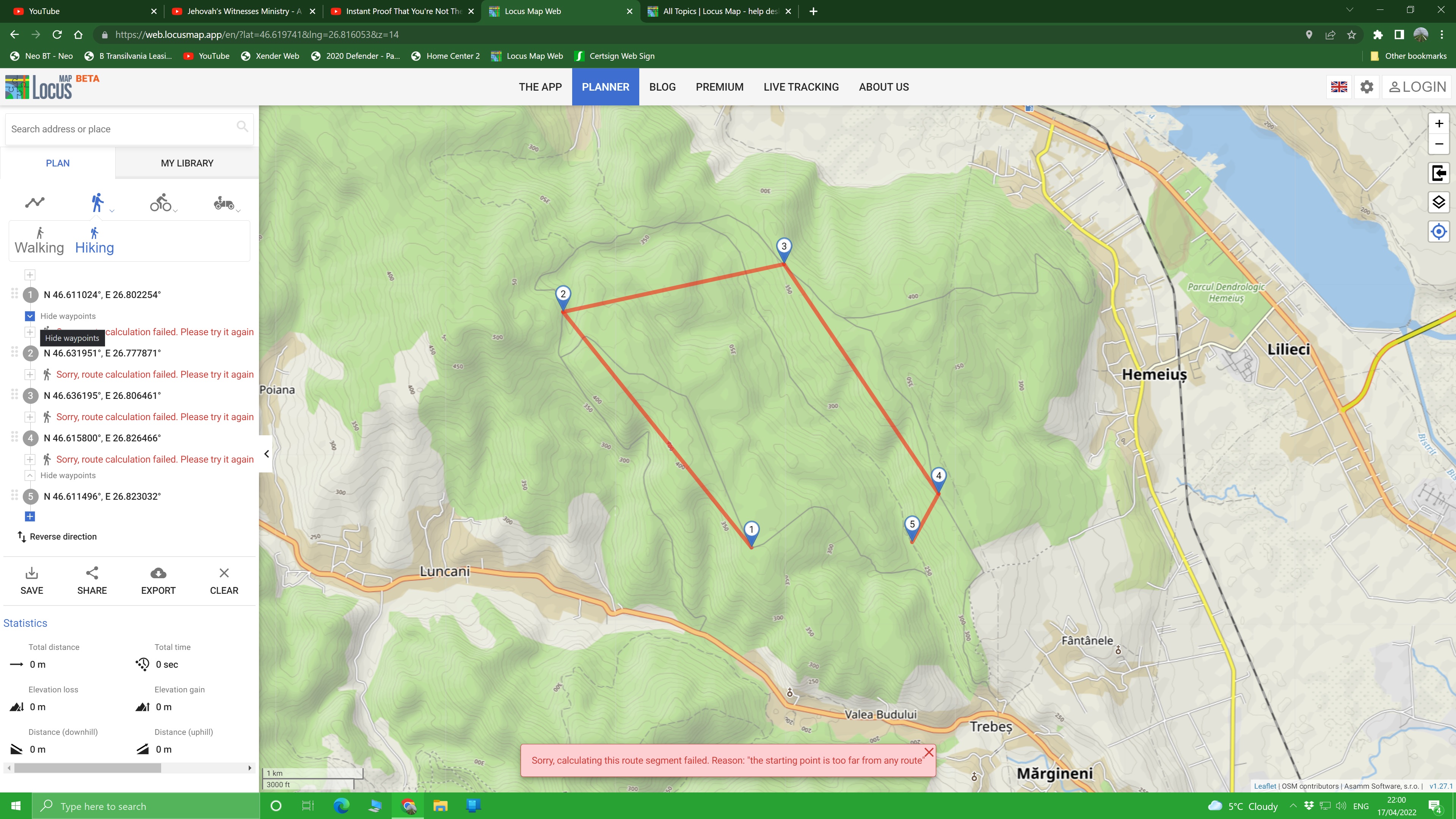 Later home I tried to plan a route(walking profile) on the online web planner and also I got another error(which I also attach here)