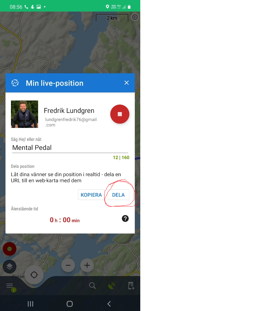 He is sharing it from his android phone in the locus app on the link I marked with red in attached picture, that looks like to be the "My live location" right?