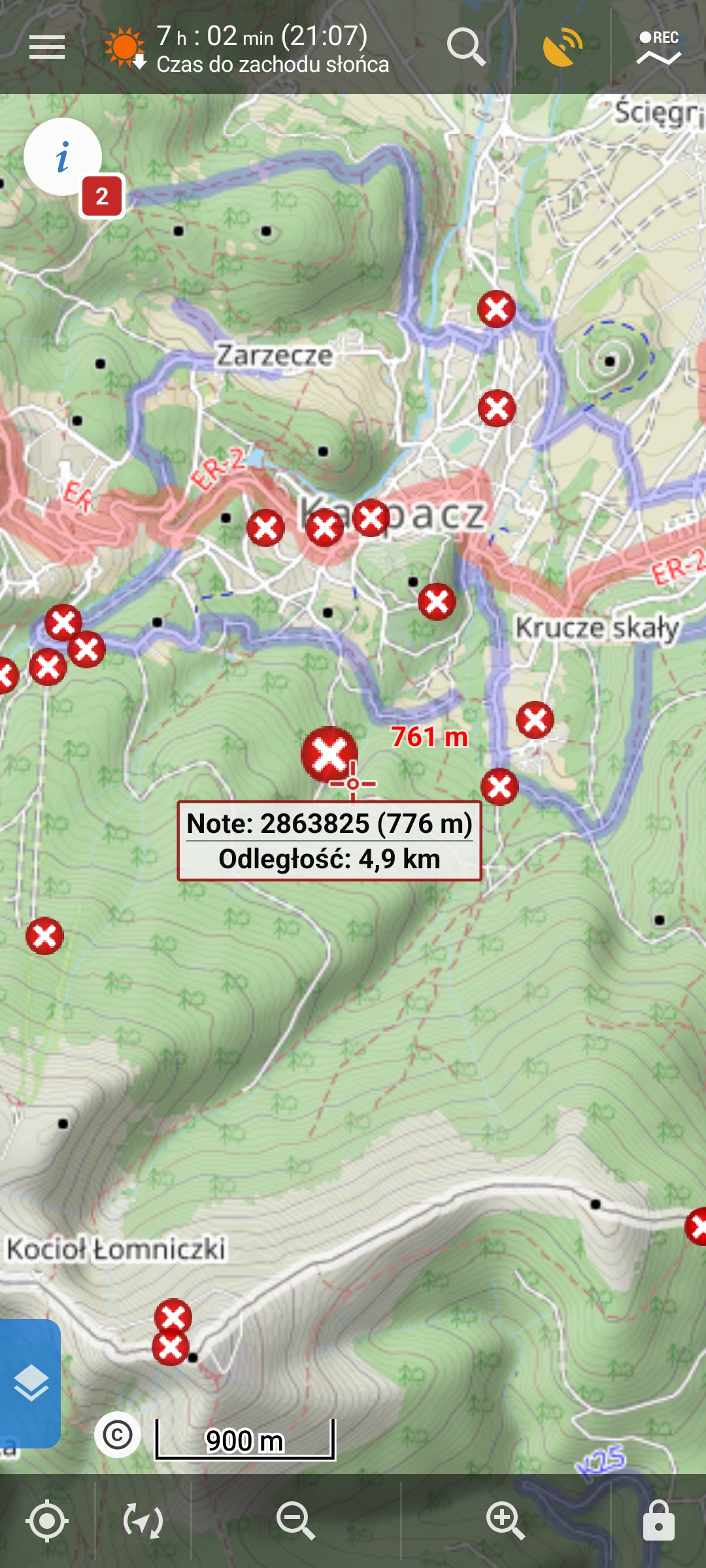 "Note" (raport) pionts on map