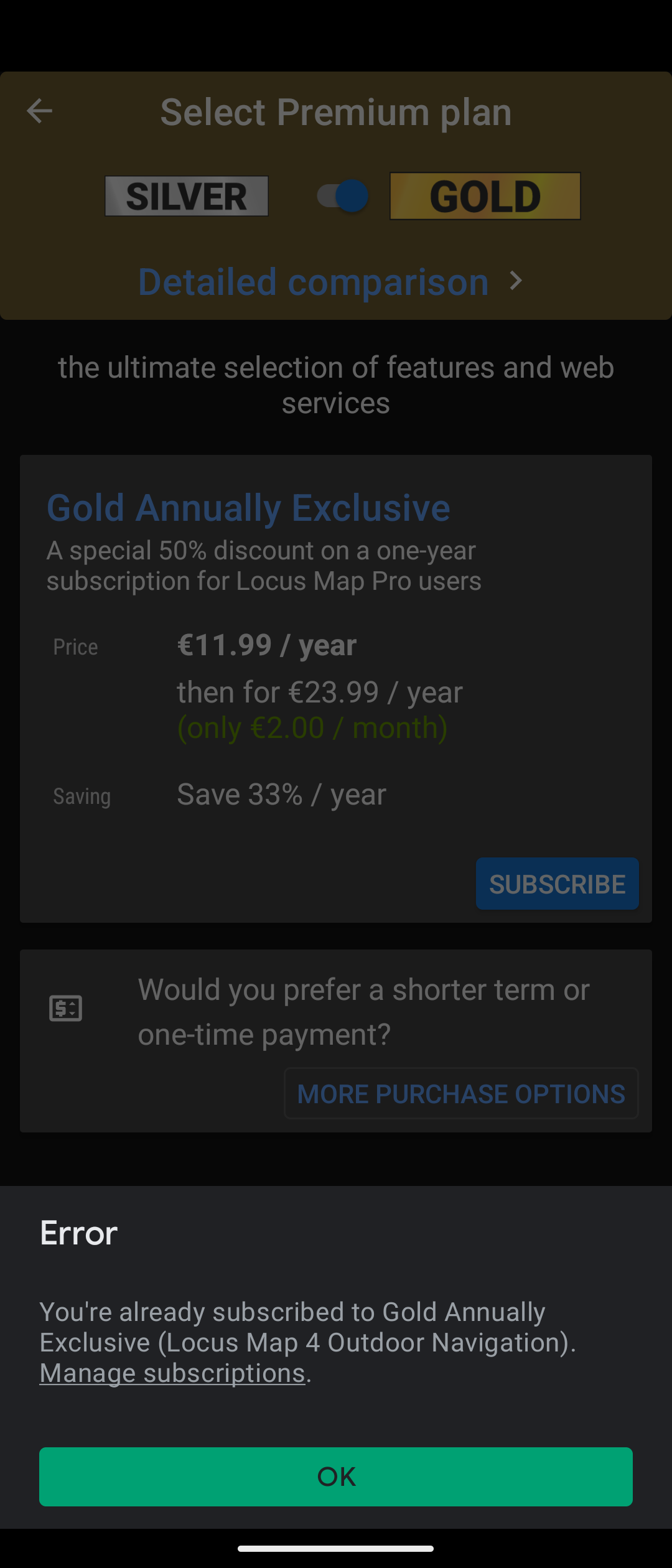 I have recently paid my Gold subscription, the app even says so, but in the subscription list there it says that i have no subscription and the app has lost all premium functionality. Literally days after i paid for next year!