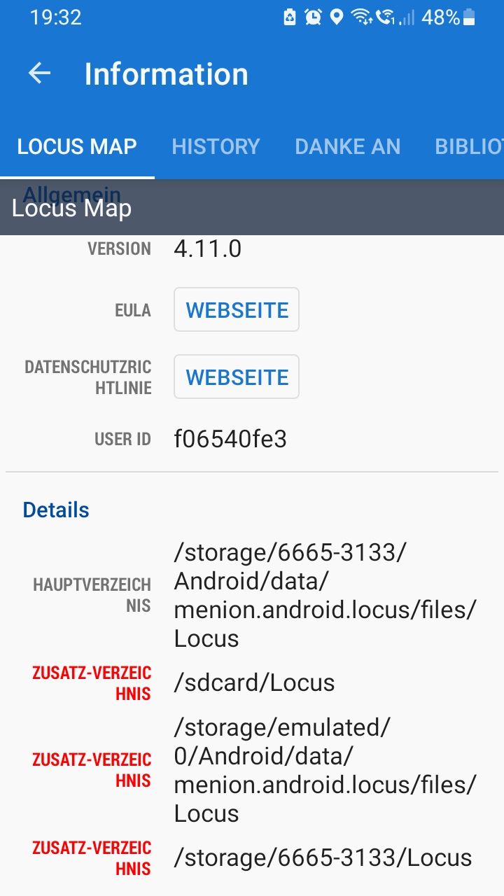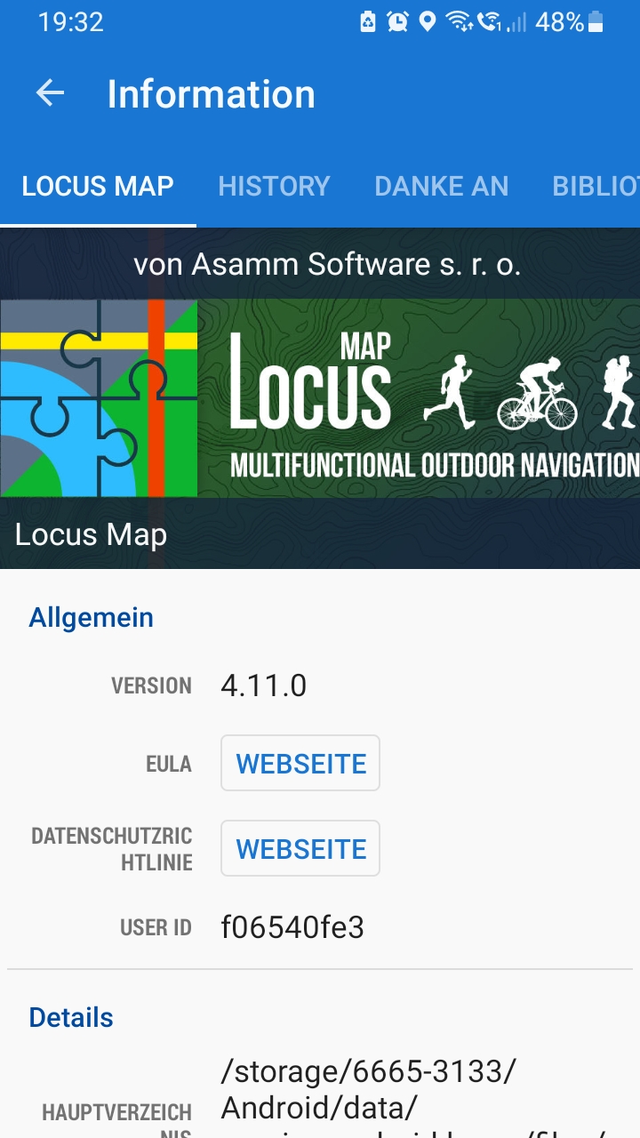 Ich habe Locus Silber auf meinem Smartphon gelöscht und stattdessen Locus Map Version 4.11.0 neu installiert. Jedoch konnte ich nur meine deutschen Karten laden diese aber auch nicht komplett. Alle anderen Länder konnte ich nicht mehr laden. (siehe Fehlermeldung) (Allgemeine Infos zur Locus Version) Auch lassen sich die Höhendaten nicht mehr laden.