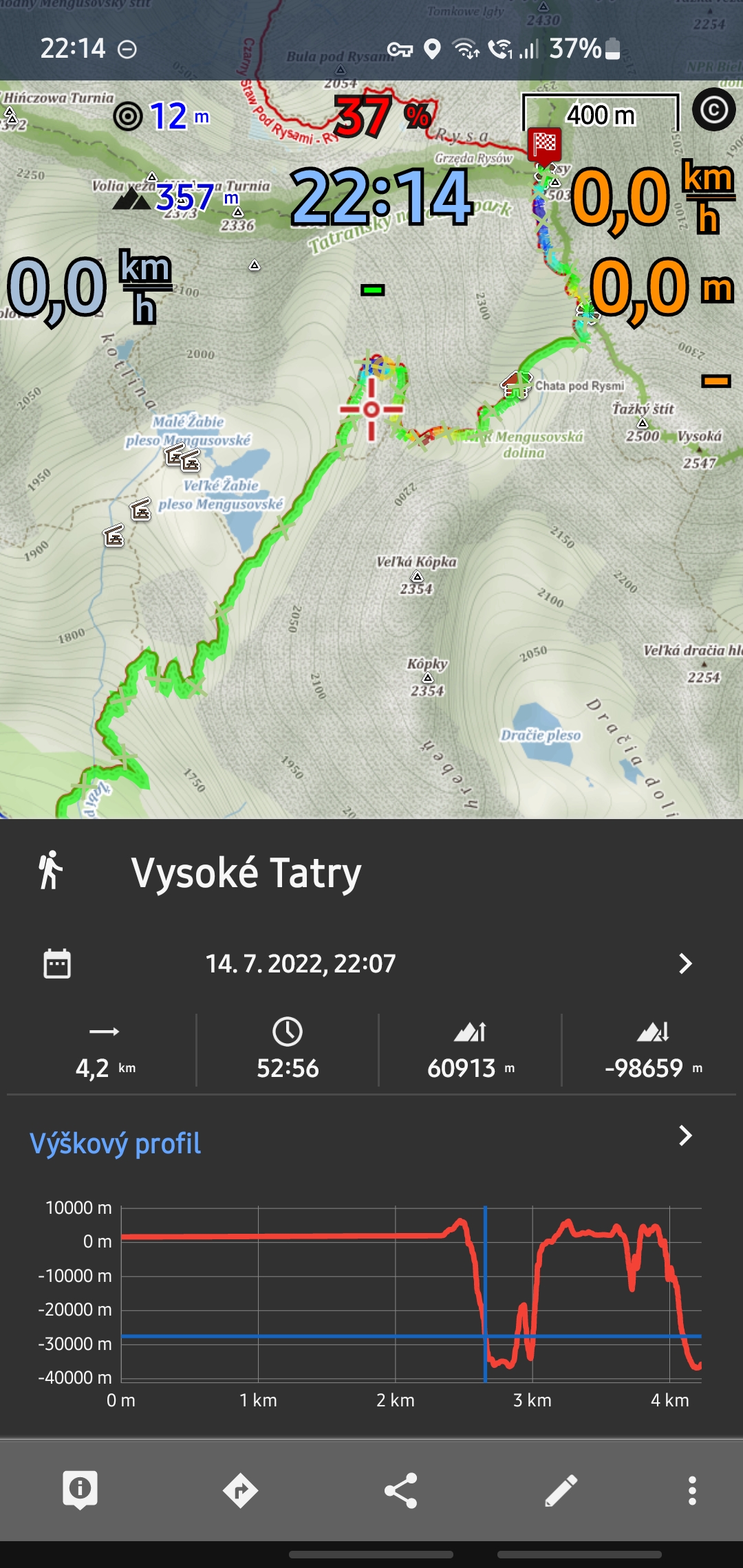 Při plánováni tras na mobilu ve vyšších výškách (zhruba nad 2000m) zobrazuje Locus nesmyslné výškové data, viz screenshot v příloze (trasa na Rysy), nebo https://web.locusmap.app/cs/?shared_track=ZThmODQ1YWUtYzgwNi00MTE0LTlmNzctNGUwZmQzNThlMTg5OjNiYTkzOTdlLTcwNTktNDFkNC1iODYwLWJmNGI4OGE2Y2YyNw.. Při plánováni na webu jsou výškové data v pořádku.