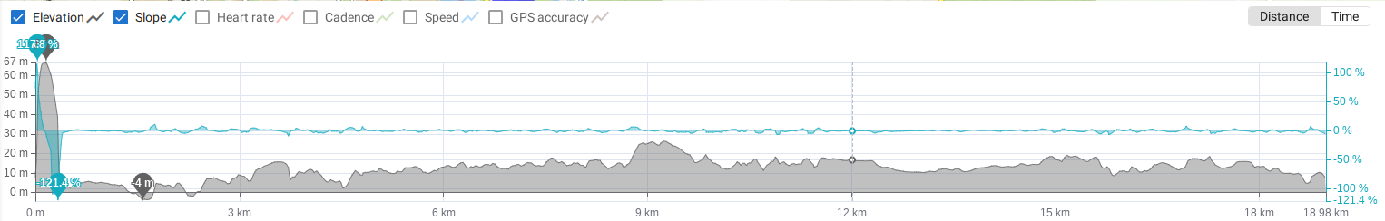 In this chart you can see the spike in the beginning - slope from 117% to -121%. Because of it ordinate scale set to -121 to +100%. And because of that whole rest of slope chart is useless - it's just too small to read it.