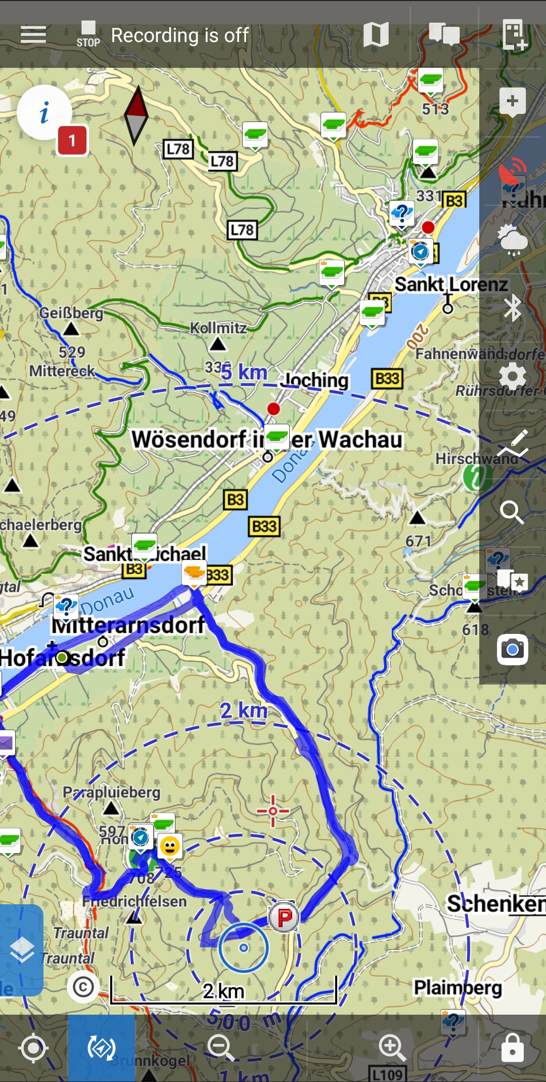 As soon as I switch to Bluetooth GPS in the Satellites menu, the map is displayed again and the GPS icon is red.
