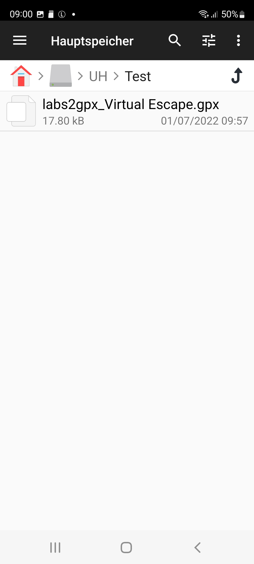 I put a gpx file into the directory /UH/Test" in the main storage.