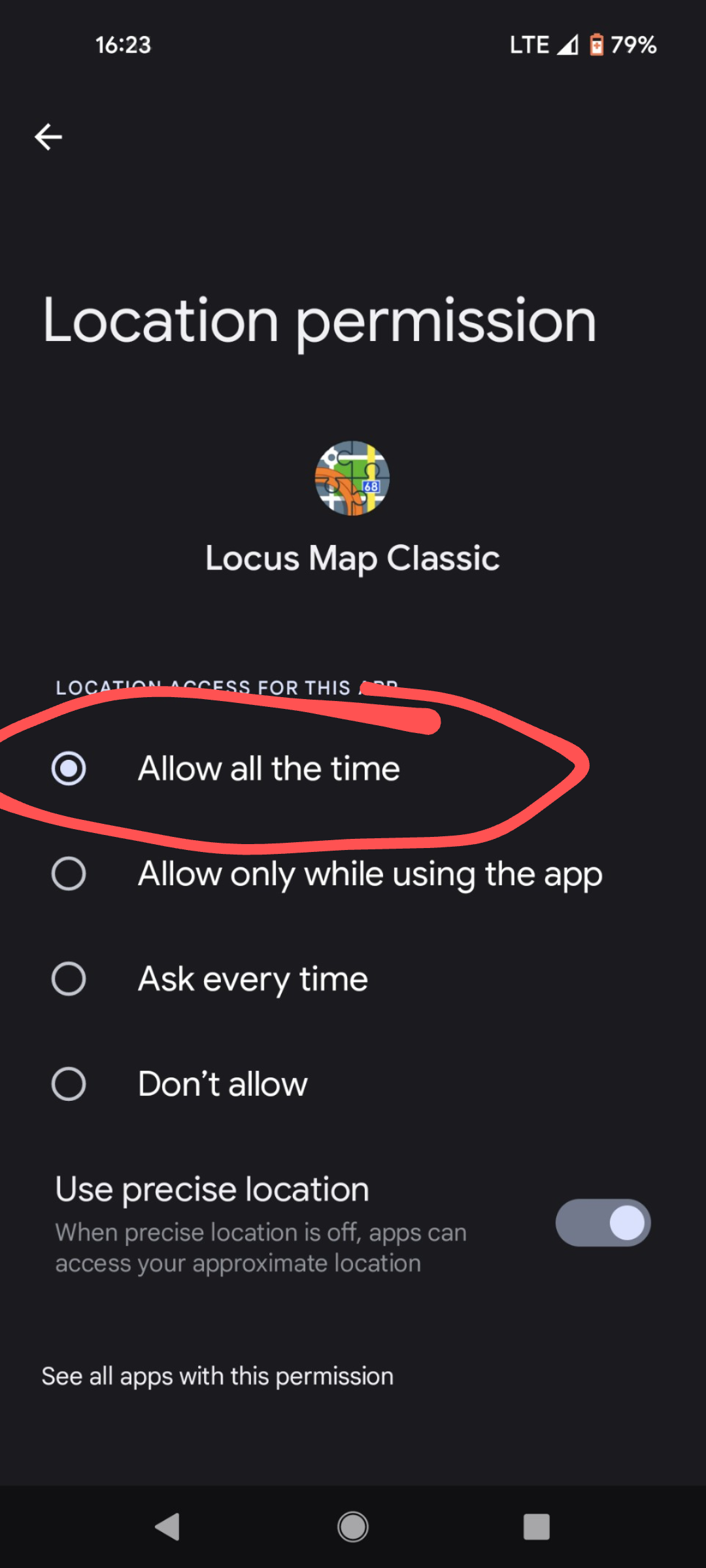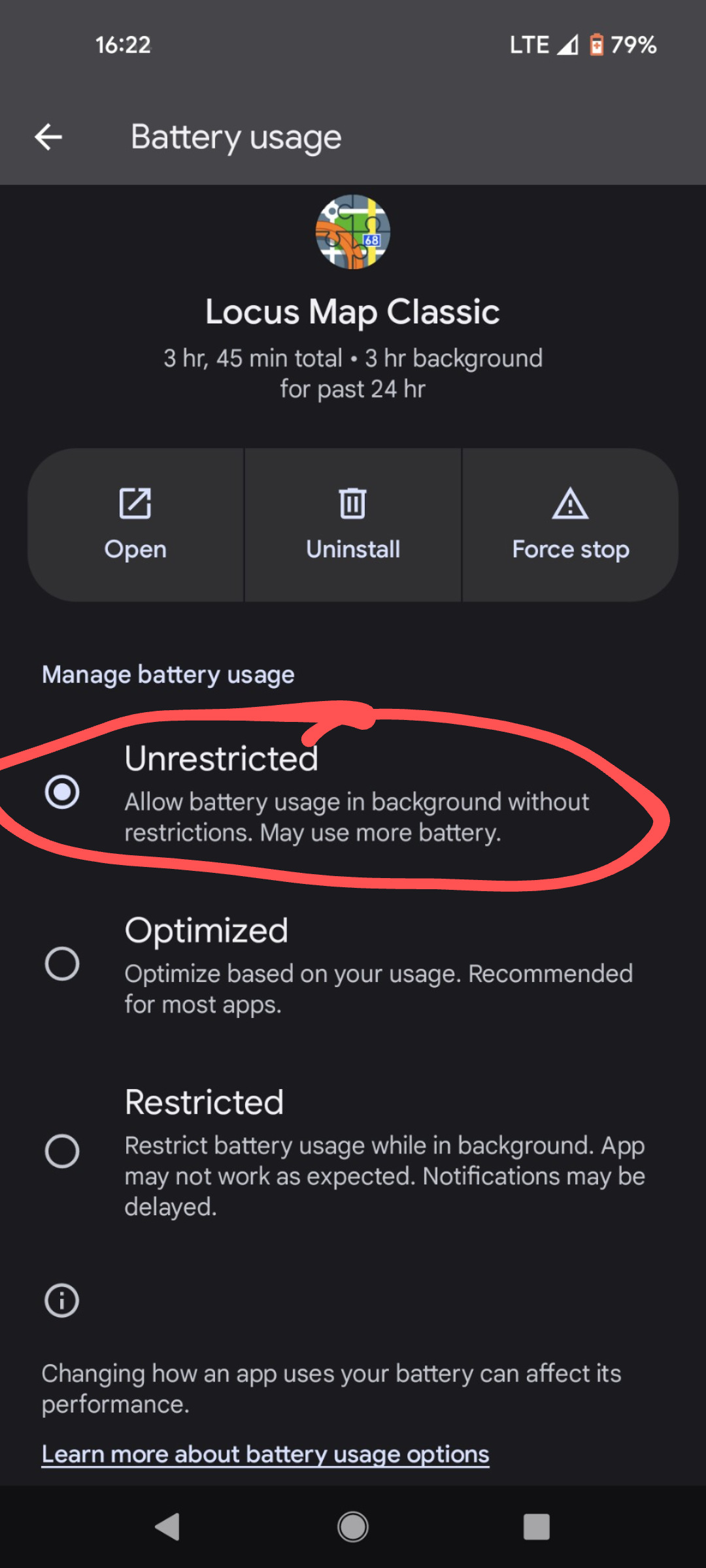 In my last hike, a few days ago, I've notice that when I'm using power saving on my Pixel 5a (android 13), Locus fail to show my current position after a while. I get a gps fix, I put the phone in my pocket, but when I'm looking to see where I am, after a while, my position doesen't move, even though it says that I have good accuracy (but zero sattelites). I guess it has something to do with the last update of the OS, because in the past I always had my phone on power saving and everything was good. I tried all things, as you can see in the printscreen. Am I missing something? Thank you!
