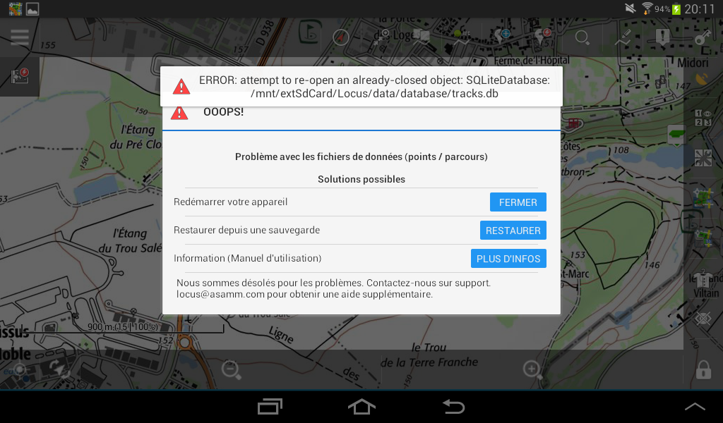 On the tablet only, the track database as been wiped (message at startup saying that there was an attempt to close an already closed - see attached picture).
