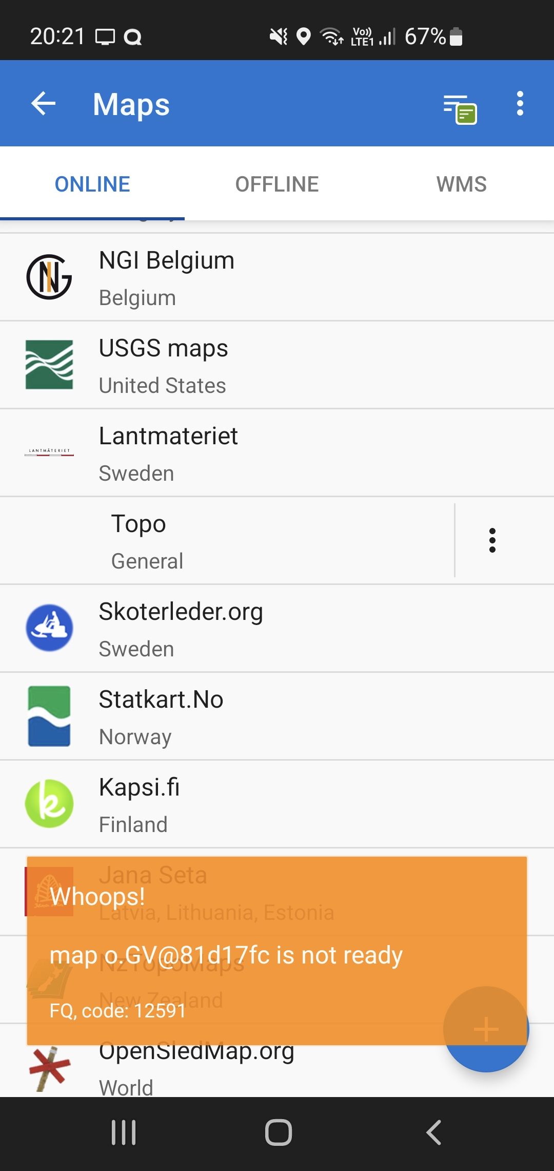It does not work to open the Lantmateriet Topo map. Get attached error message.